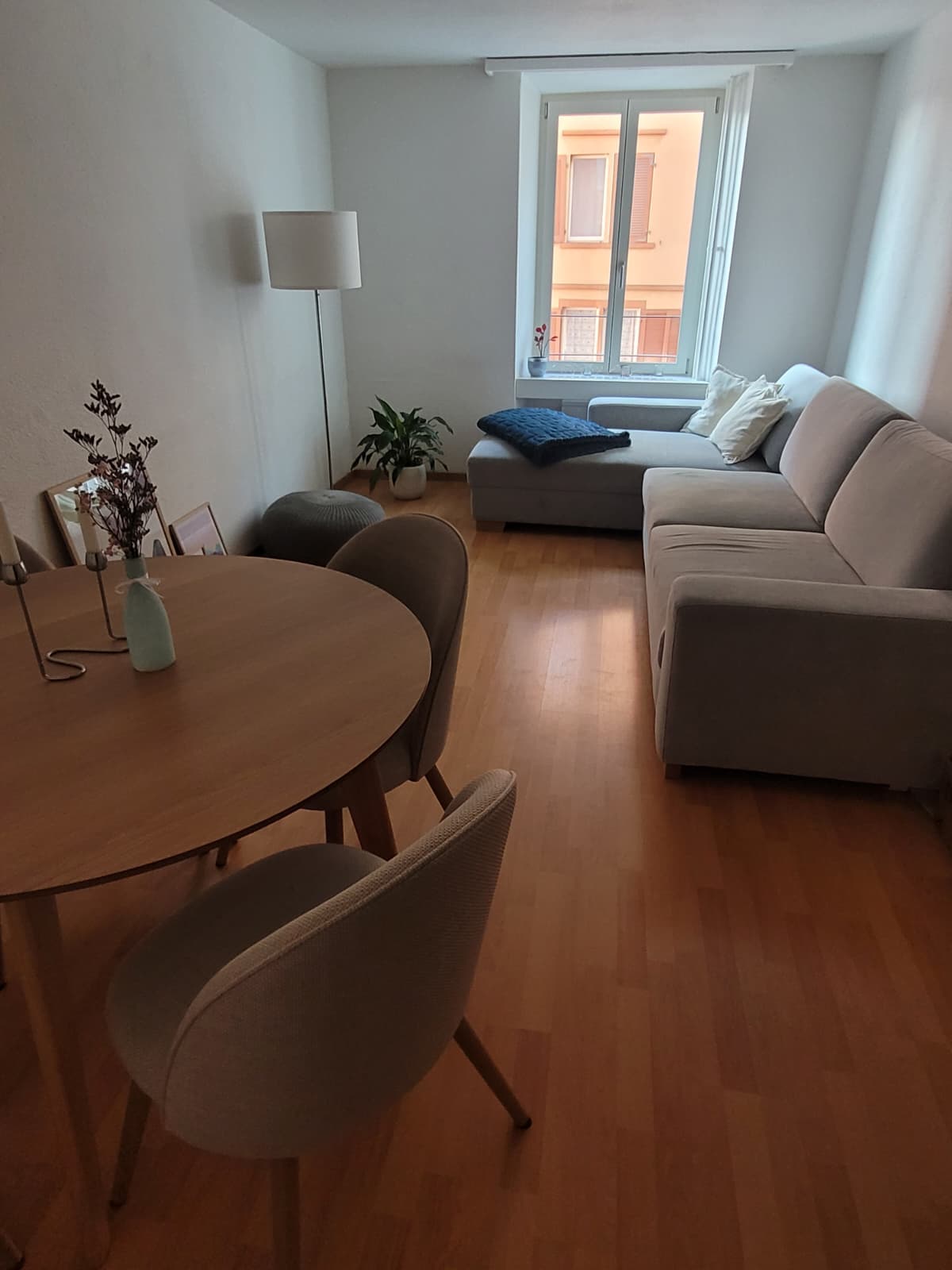 Die Wohnung ist an der Neustadtstrasse in Nähe des Bundesplatzes, Einkaufsmöglichkeiten (Coop, Migros, Denner) sind in 5 Minutern erreichbar und die nächste Bushaltestelle ist ca. 4 Min zu Fuss entfernt. Gemeinschaftsräume (Küche/Bad/Wohnzimmer) teilen wir uns entspannt.