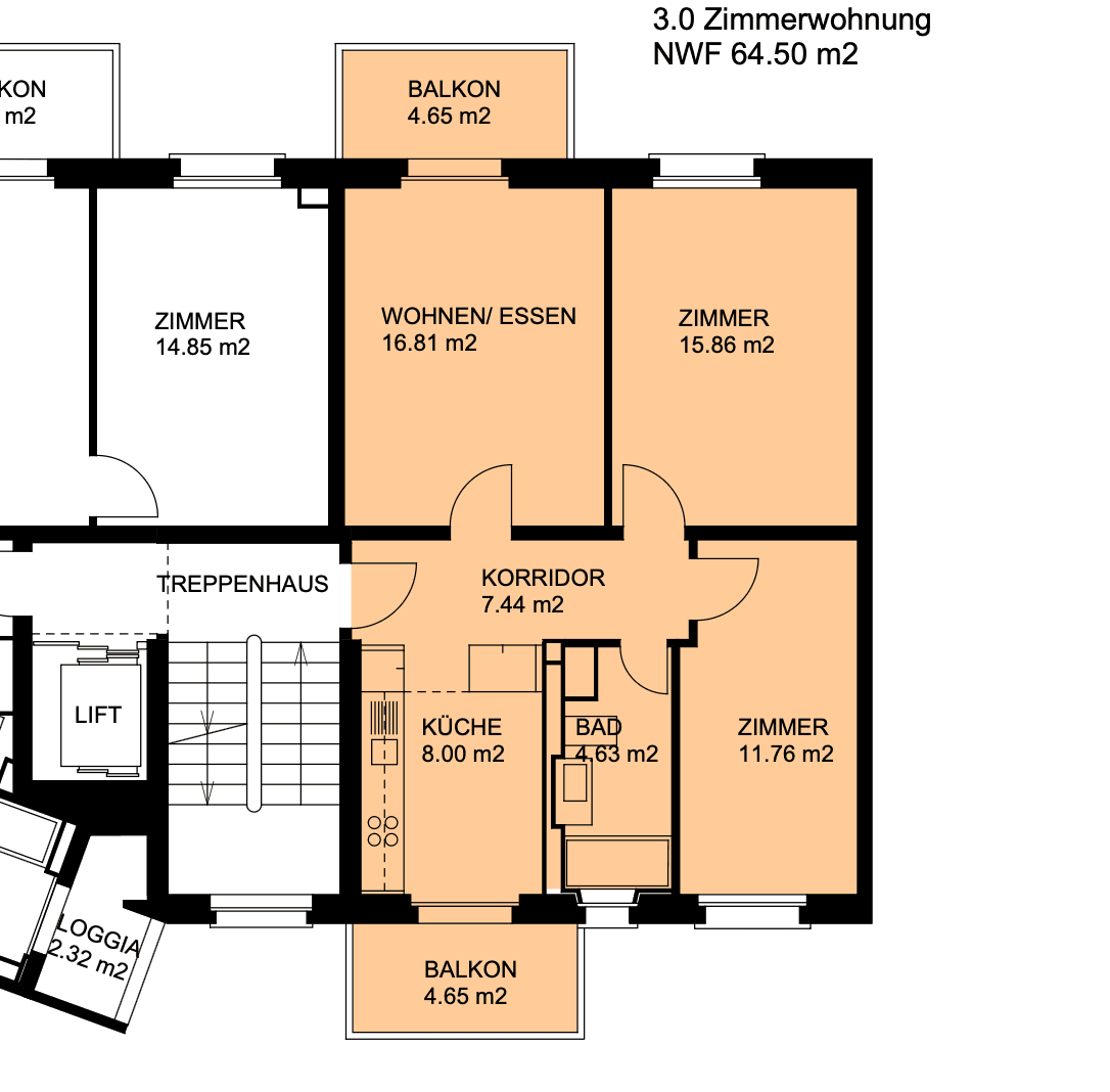64.50 m², 3 Zimmer: CHF 1'666.-/Mt.