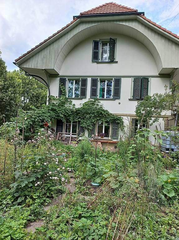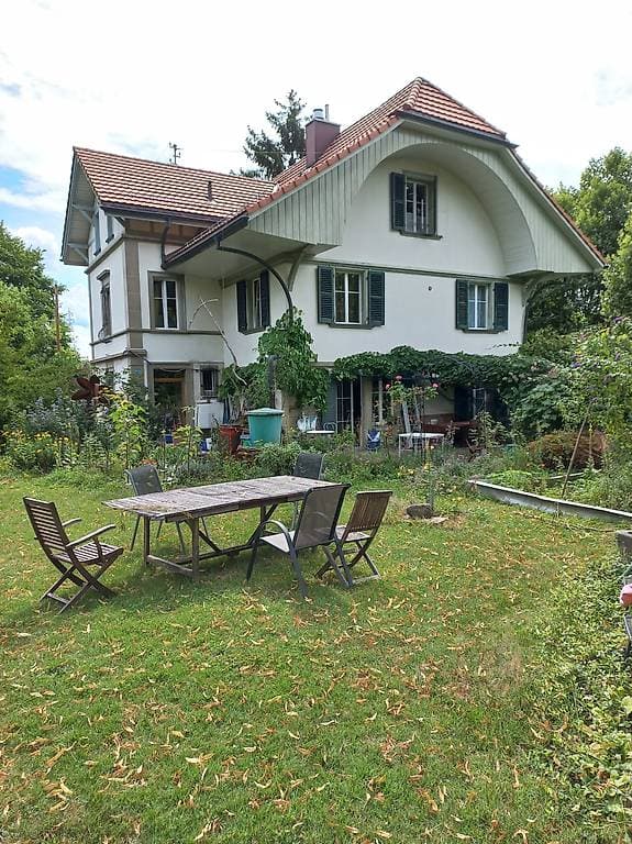 Grosses Zimmer ab November 25 zu vermieten in ökologisch renoviertem Haus in naturnahem Garten in Worblaufen. Es gibt eine gemeinsame Küche und ein Bad. Die Aare und der Bahnhof Bern ab Worblaufen sind fünf Minuten entfernt. Das Zimmer kann teilmöbliert gemietet werden.
