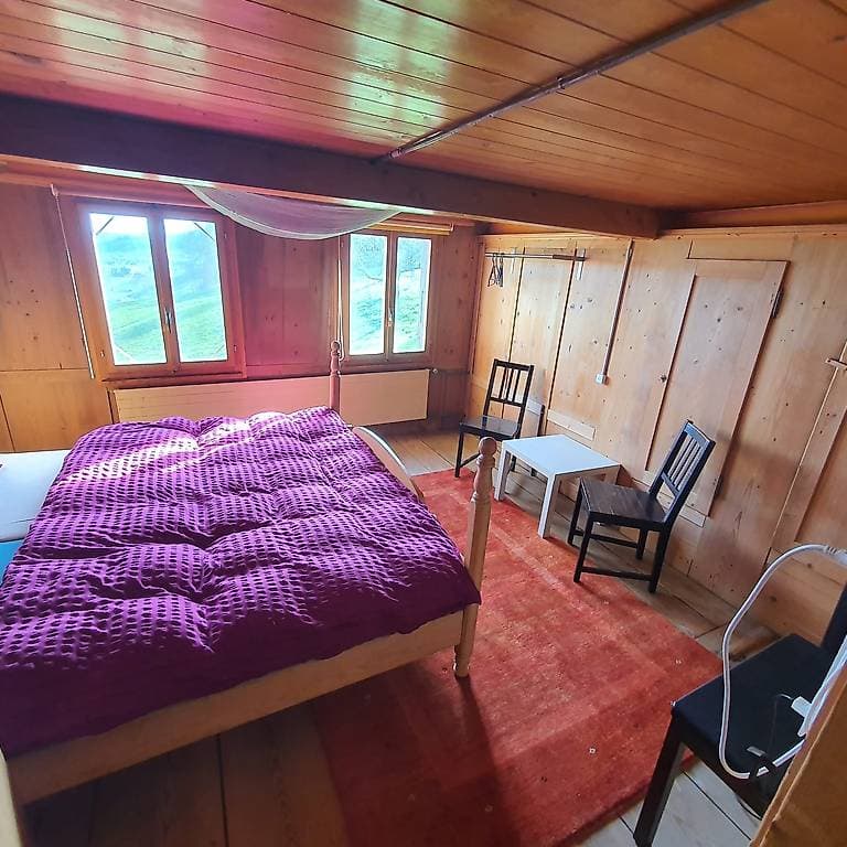 zu mieten. Das Haus liegt zwischen Schüpfheim - Escholzmatt auf 800 Metern Höhe. Nebenan hat es 1 Schopf, 1 Tenne, 1 Stall und 1 Hühnerstall. Küche und eine einfache Dusche/Toilette sind gemeinsam zu nutzen. Schöne, ruhige Wohnlage. Es hat 1eingezäunten Garten und 1 Balkon, genug Platz zum Chillen und Entspannen. Mann könnte hinter dem Haus zusätzliche 1 Kompost-Toiletten-Häuschen bauen. Ich wohne mit einem Hund, zwei Katzen und 2 Hühnern hier. Ich freue mich von Dir zu hören. Liebe Grüsse Jürg