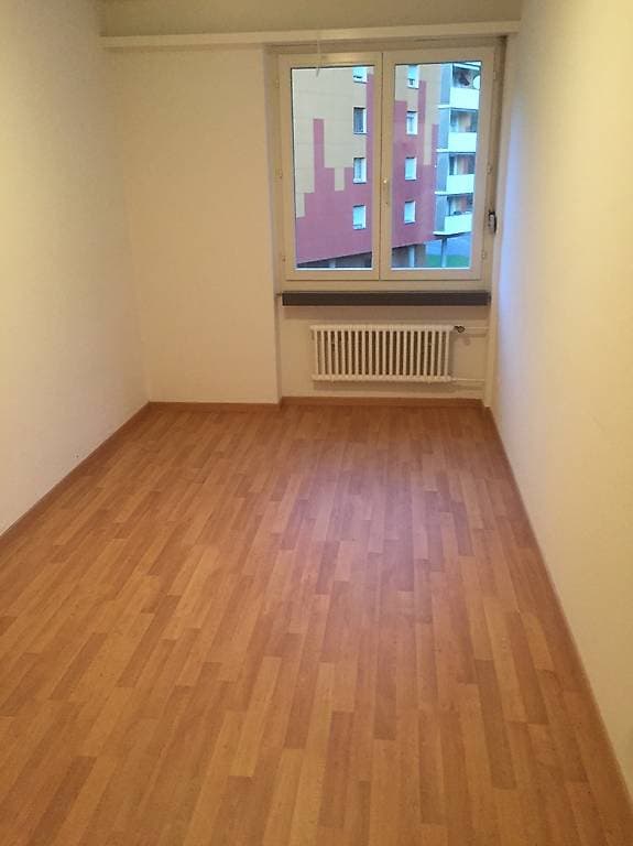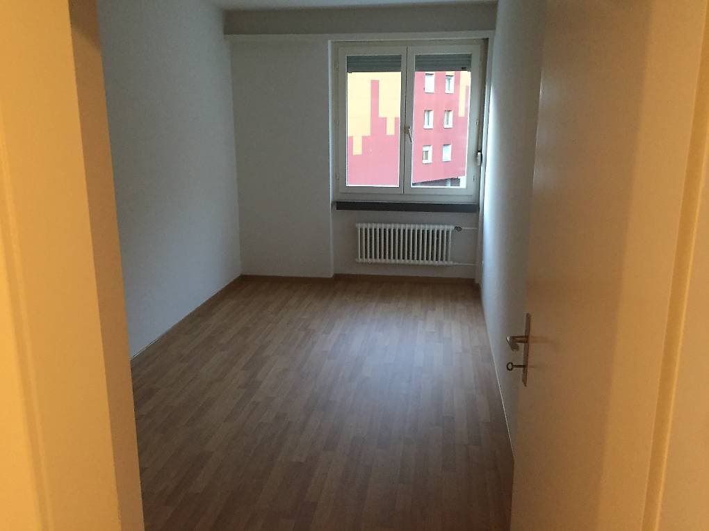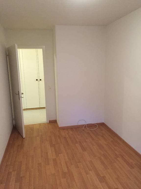 Das helle Zimmer ist 11^m2 gross. Die Wohnung ist ausgestattet mit 4 Zimmer, einer Küche, einem Bad und einem separatem WC. Im Keller befindet sich ein zusätzlicher Abstellraum, eine Waschküche mit Waschmaschine und Tumbler. Ein Aussenstellplatz kann für 40,- CHF dazu gemietet werden, sowie ein TG-Parkplatz für 120,- CHF.