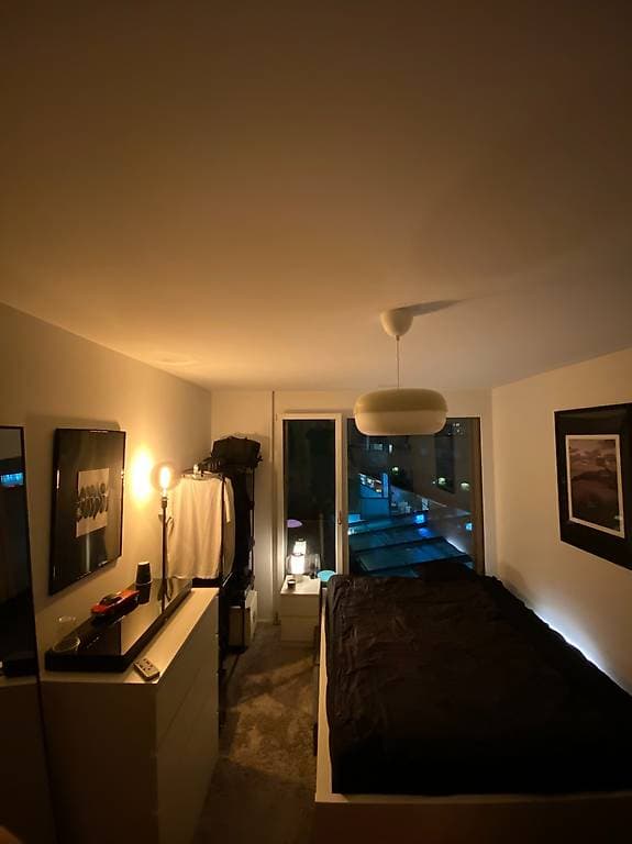 It is a bright room, and some furniture can be taken over. You will have your own bathroom with bathtub/shower and share a private laundry room with dryer and washing machine with your flatmates.