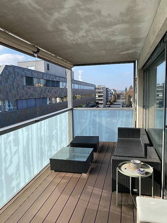 The flat share is located in Wallisellen and has excellent transport links. The train station is very close by (3 minutes), but you don't hear much noise from the trains. There are direct trains to the Zurich main station (9 minutes) and to Oerlikon (3 minutes) or a direct tram/bus to the airport (19 minutes). There are also numerous shopping facilities (Migros, Coop, bakery, Müller, post office, Glatt Zentrum) just around the corner, all within walking distance. A bicycle storage room is also available.