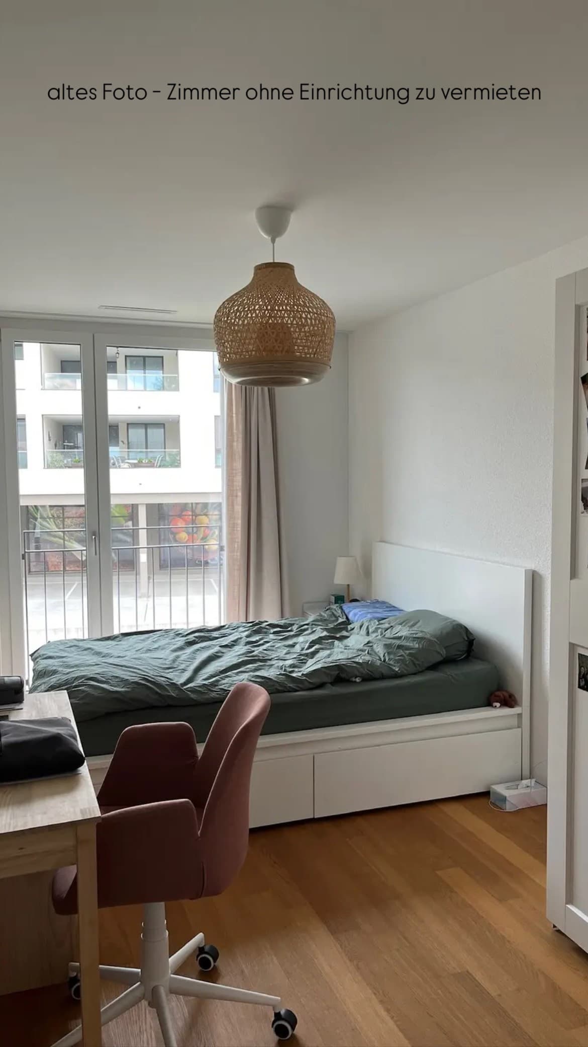 Das freie Zimmer ist 12m² gross, lichtdurchflutet und wird ab 1. Juni 2026 unmöbliert und unbefristet vermietet.