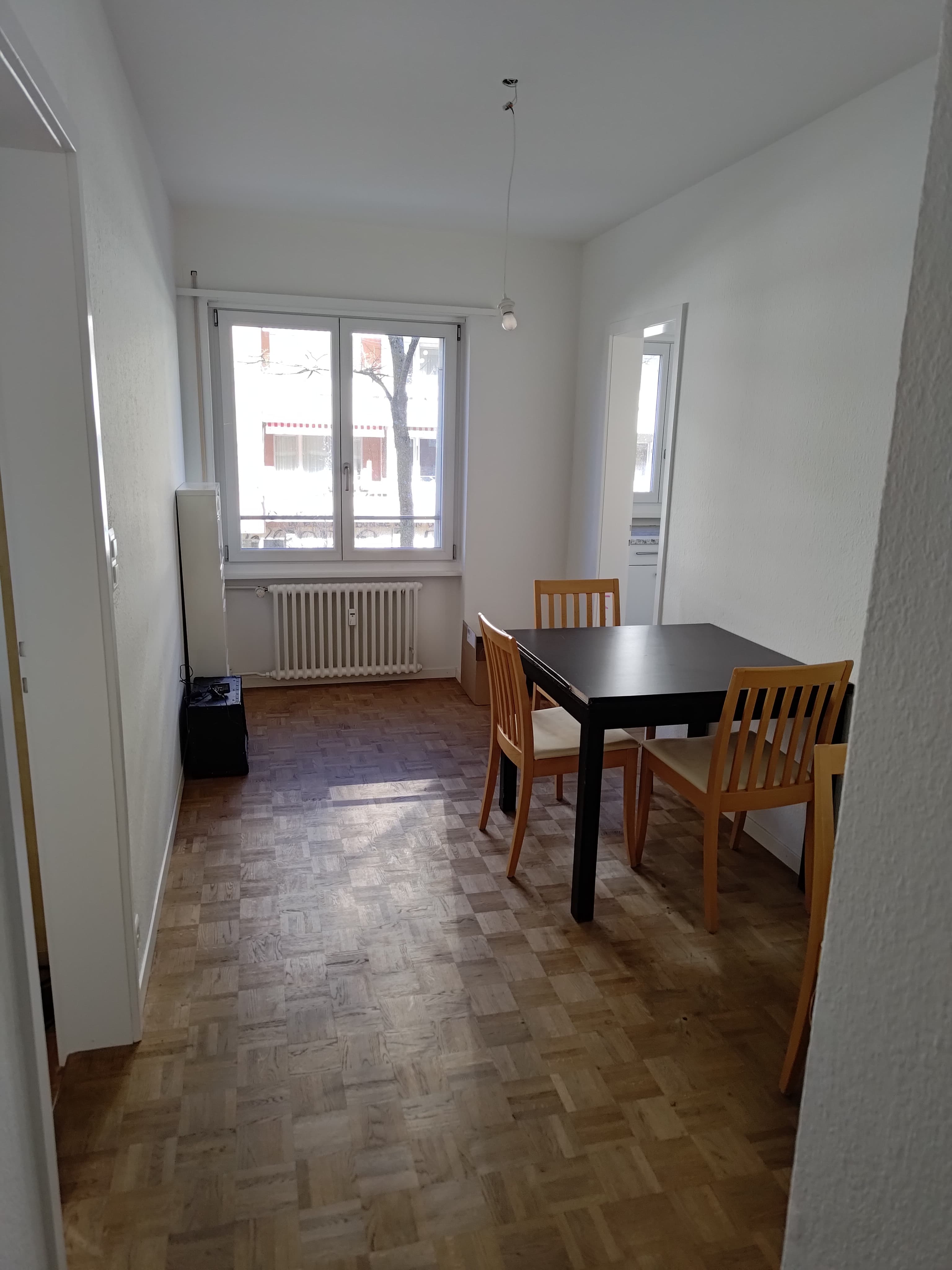 Das Zimmer wird unmöbliert vermietet und ist ab dem 1. April ausgeschrieben. Du kannst aber auch schon vorher einziehen.