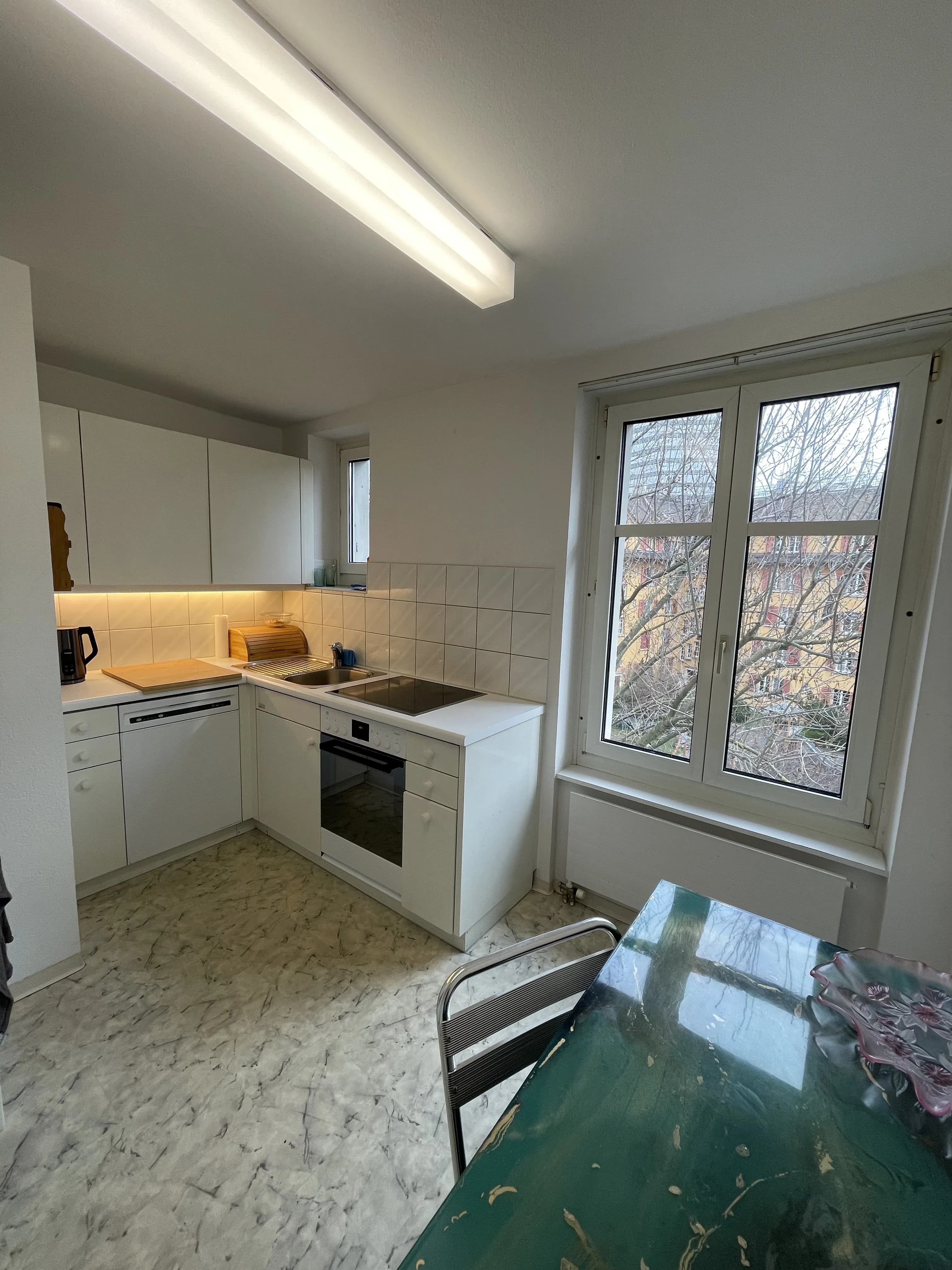 Die Wohnung ist 4.5 Zimmer gross und liegt 2 Gehminuten vom Limmatplatz und der Limmat entfernt. Die Tramstation befindet sich in unmittelbarer Nähe; Hardbrücke und HB erreicht man in 5 Minuten mit dem Tram oder in 8 Minuten mit dem Velo.