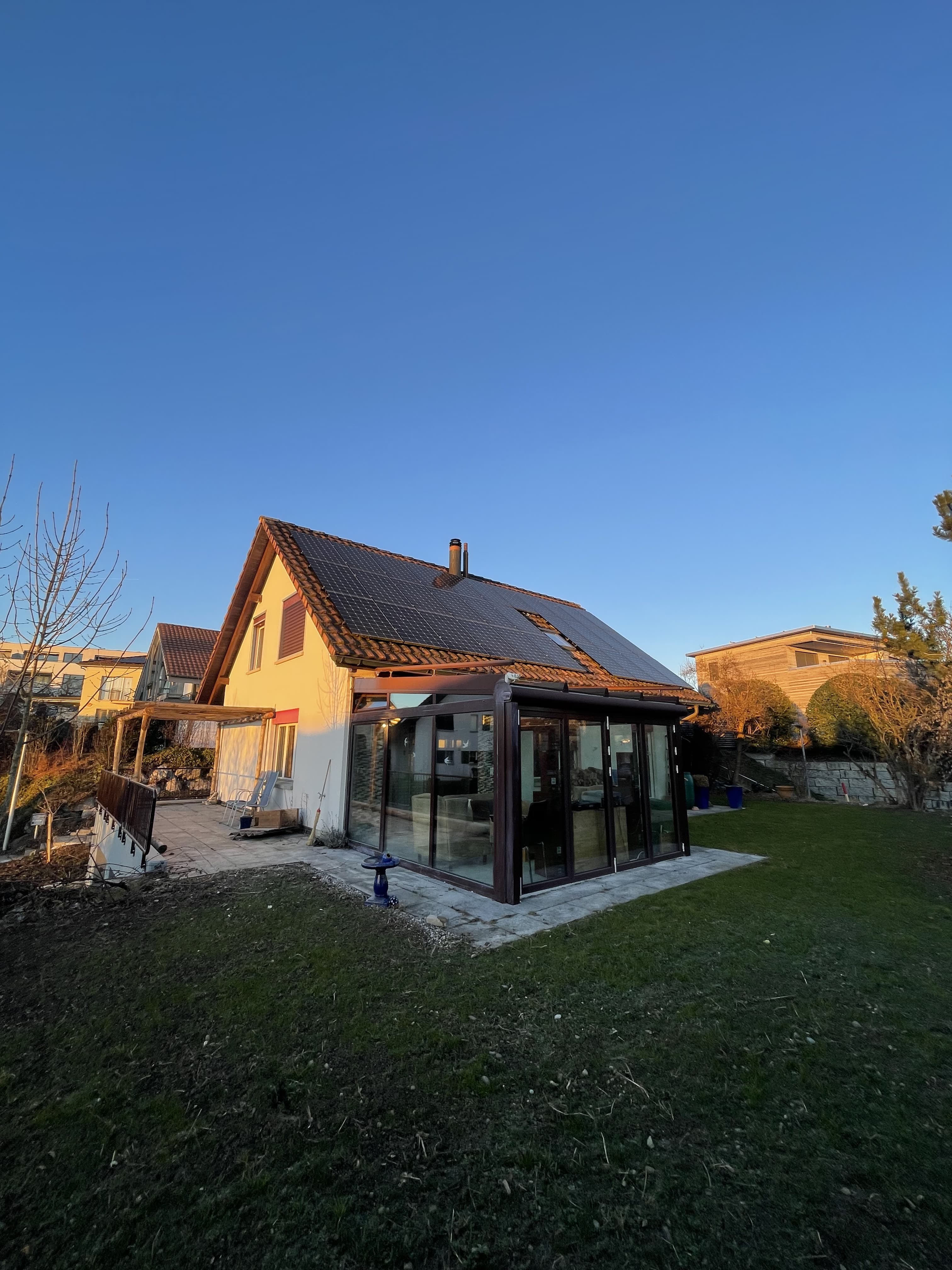 Das Haus wurde 1996 erbaut und ist mittlerweile grösstenteils renoviert bzw. modernisiert. Angebaut ist auch noch ein Wintergarten und beide Badezimmer werden voraussichtlich im März 2026 komplett renoviert (schick renoviert, nicht billig :-)). Es wird also im März jeweils nur ein Badezimmer verfügbar sein. Dafür ist danach alles neu und der Mietpreis bleibt identisch. In der Garage befindet sich unter anderem eine Holzwerkstatt, die ebenfalls benutzt werden kann. Das Haus hat eine Klimaanlage für Tropennächte.