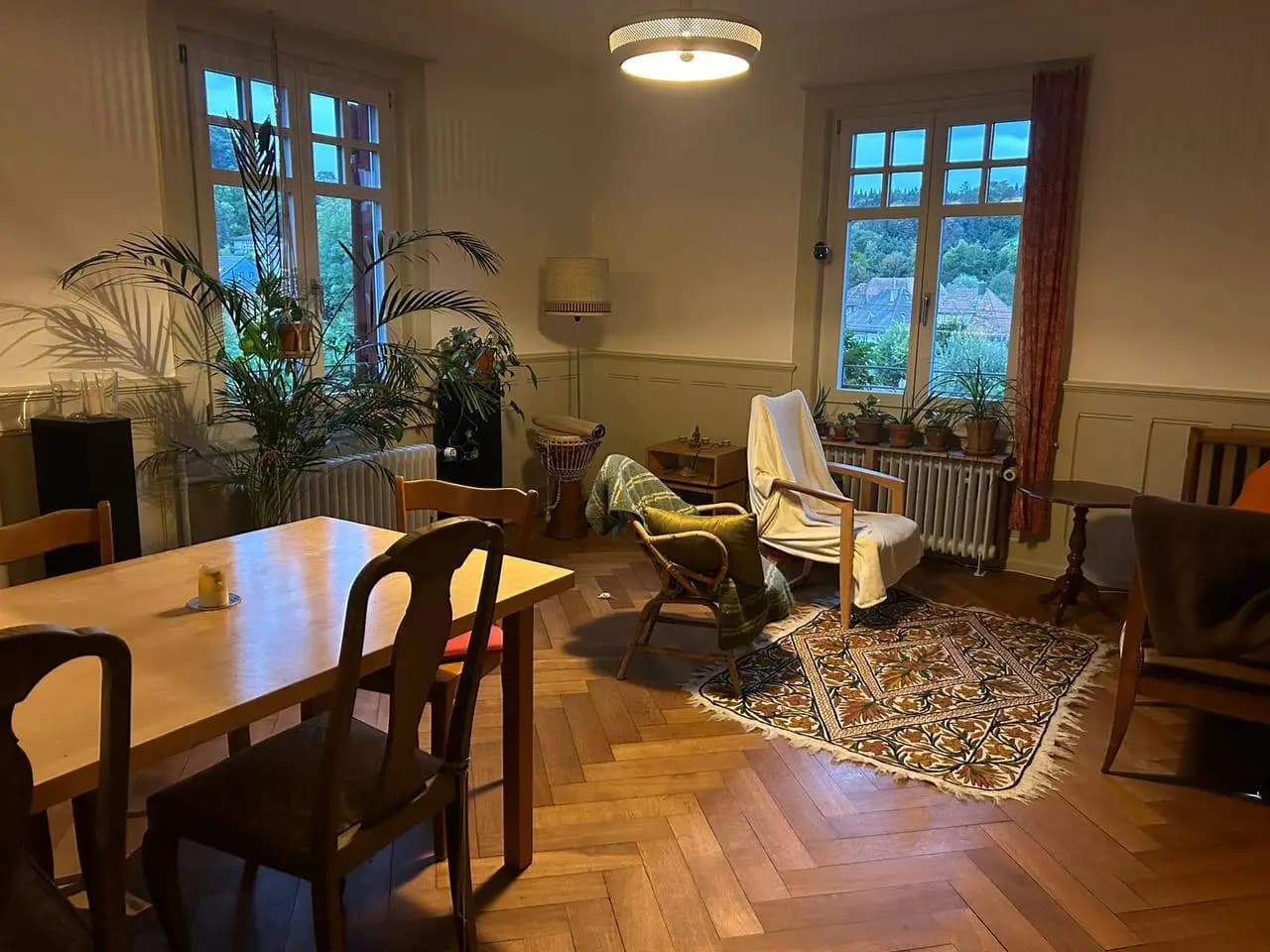 Unser zu Hause: Wir bewohnen das wunderschöne Pfarrhaus in Niederscherli (5 Minuten vom Bahnhof), mit viel Grün rund herum. Es besteht auch die Möglichkeit, sich am Gemüsegarten zu beteiligen. Das Zimmer (möbliert) ist 20 qm gross, hell und kostet monatlich 670.-( inkl. NK). Zur Mitbenutzung steht ebenfalls ein Wohnzimmer sowie Gästezimmer zur Verfügung. Direkt hinter dem Haus gibt es einen kleinen und moosigen, Wald. Die Sense (Fluss) ist mit dem Auto in 10 Minuten zu erreichen. Einkaufsmöglichkeiten Coop und Landi sind in unmittelbarer Nähe.