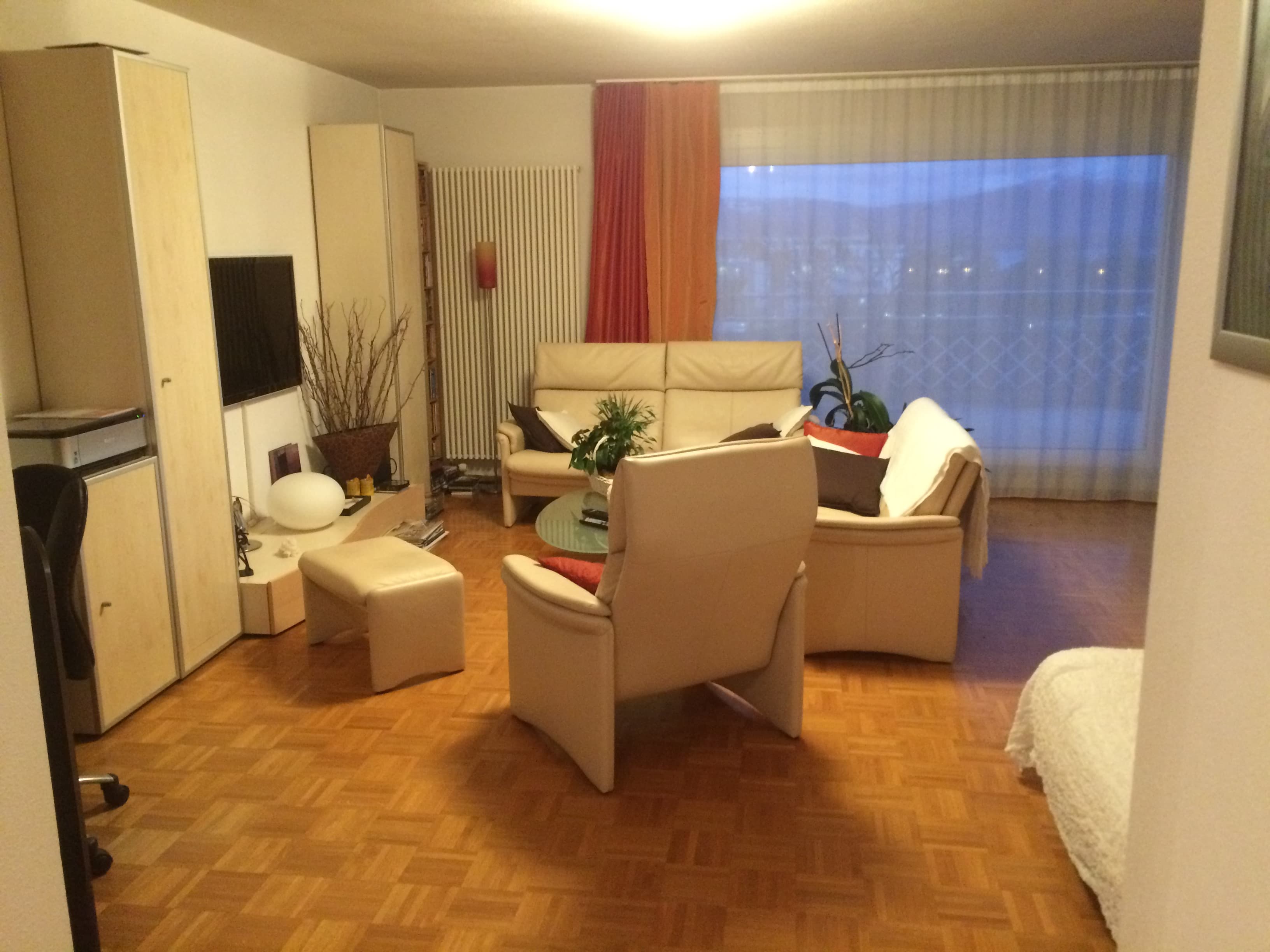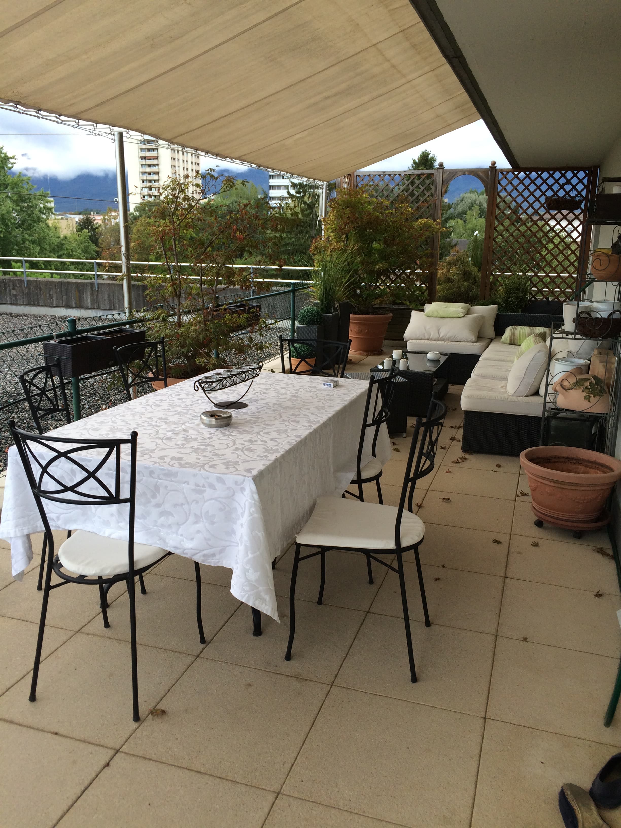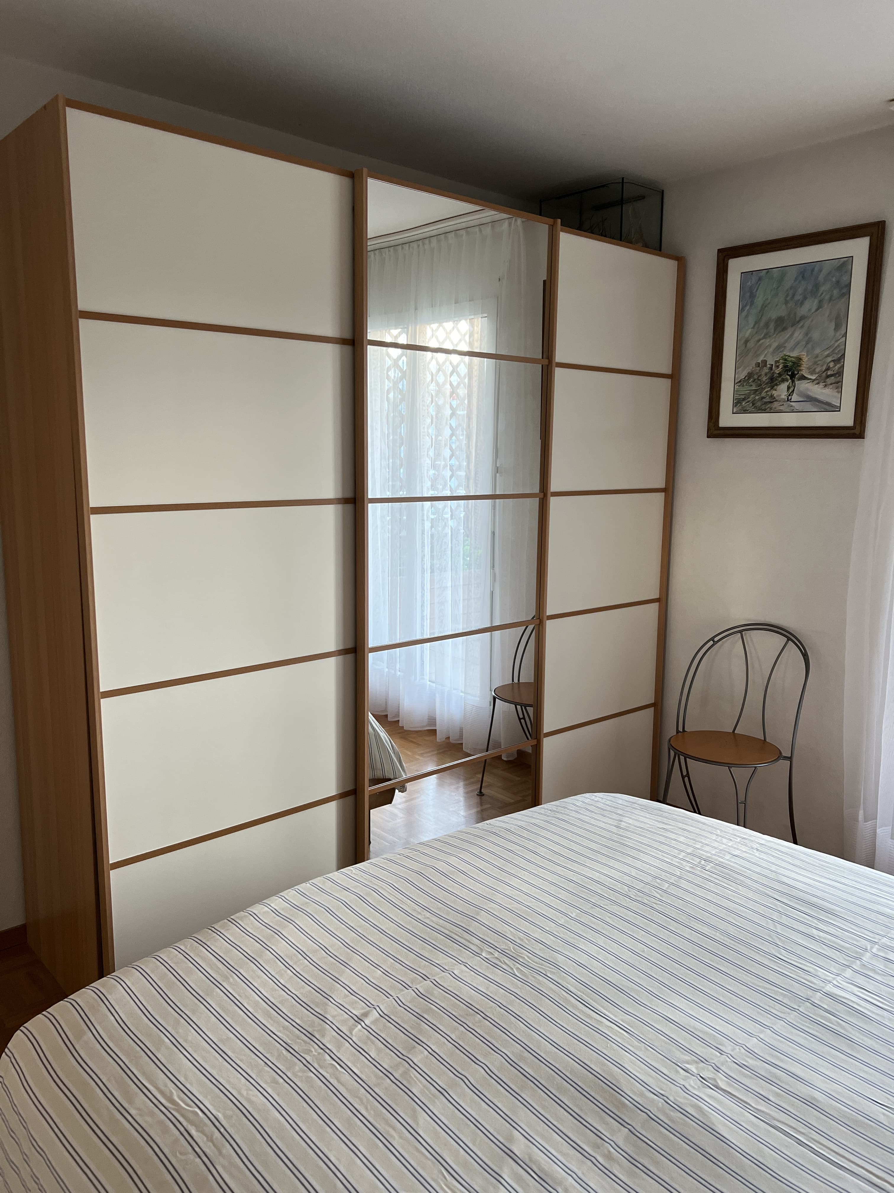 Chambre en colocation dans grand appartement lumineux 5 pièces proche de la gare de Nyon, avec place de parking en garage souterrain, quartier calme et résidentiel.