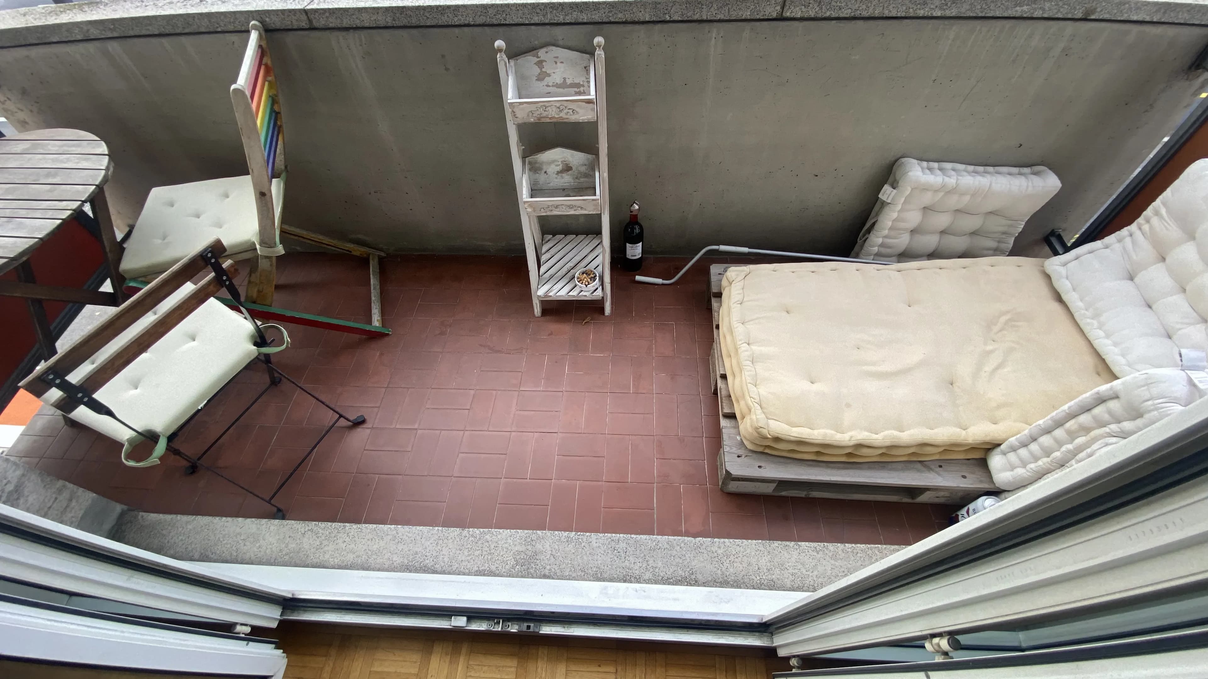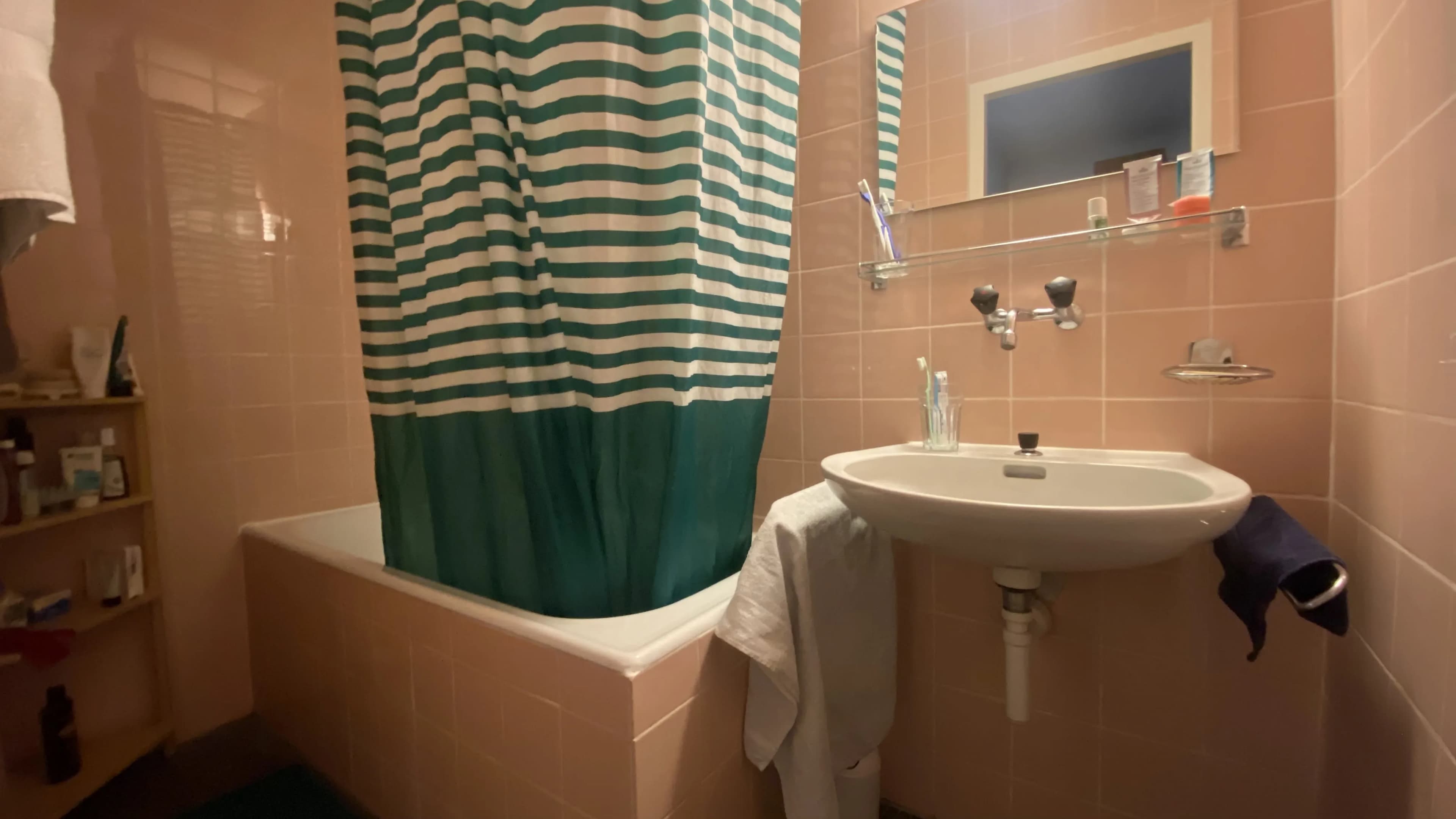 L'appartement est spacieux: la salle et la cuisine font un espace très ample, il y a un balcon aussi. Le wc est dans une petite chambre séparée de la chambre à laver qui a un lavabo et une bagnoire.