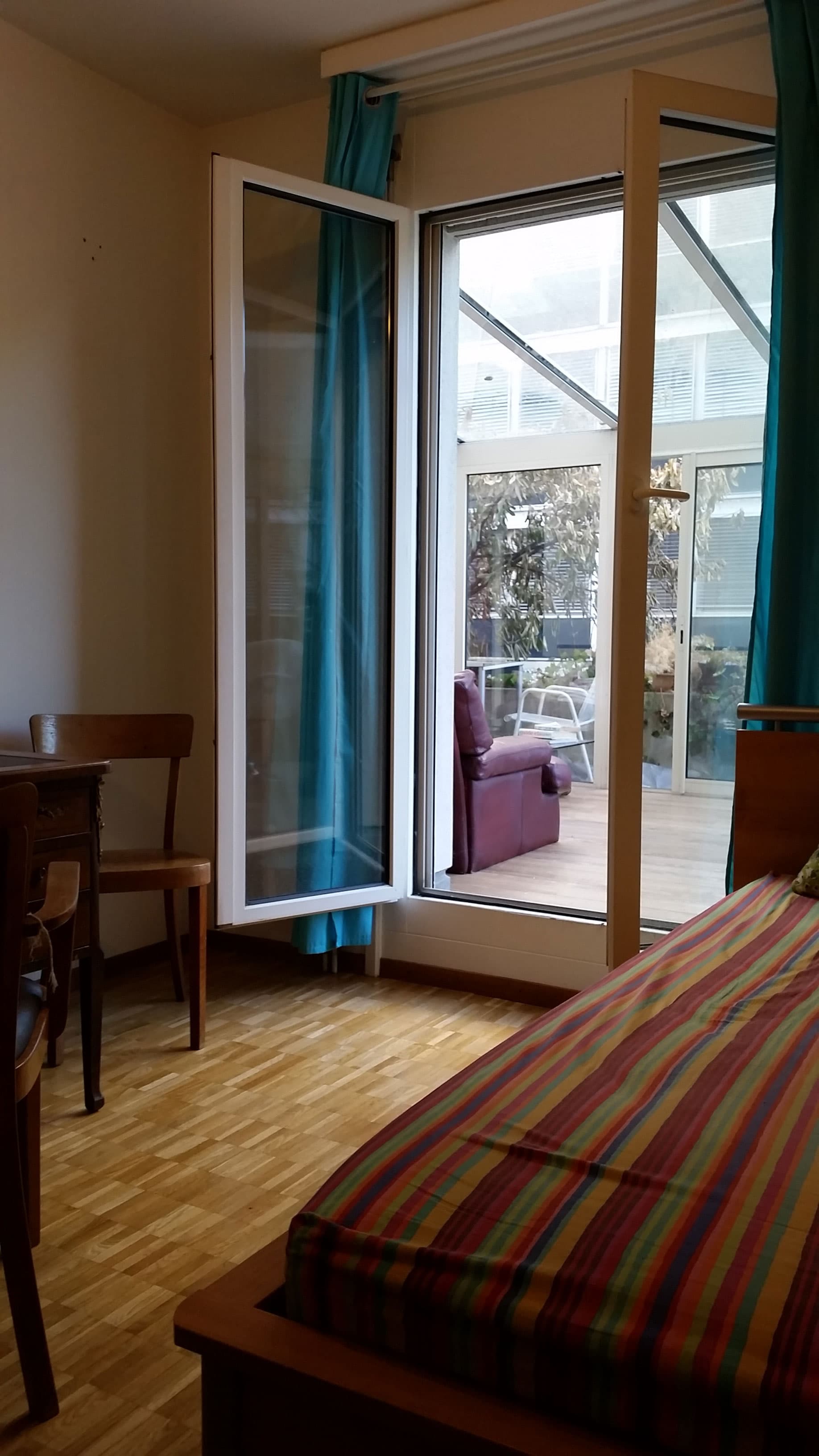 1 chambre meublée est disponible ; elle donne sur une véranda.
