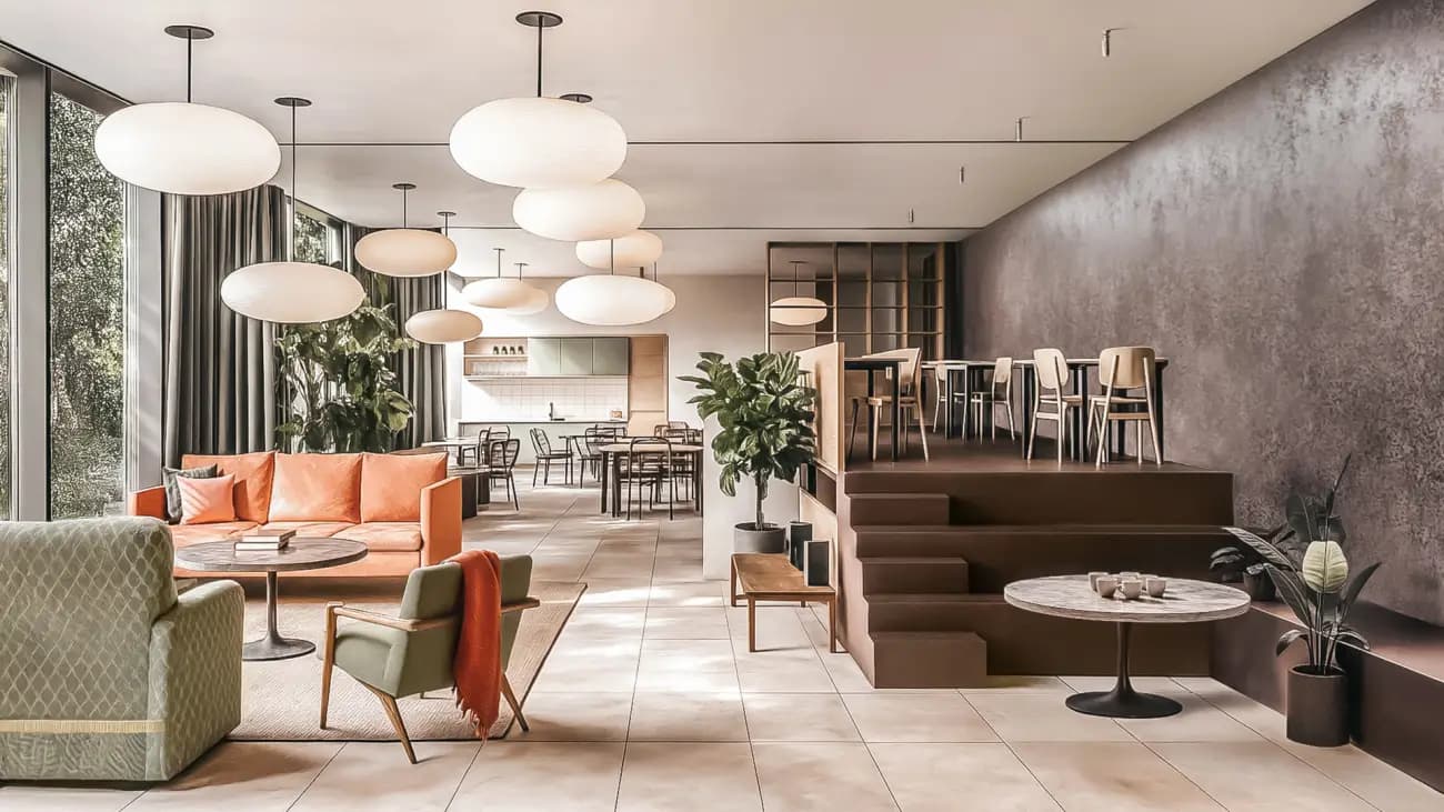 - 142 m² Café-Style Lounge mit Coworking Bereich