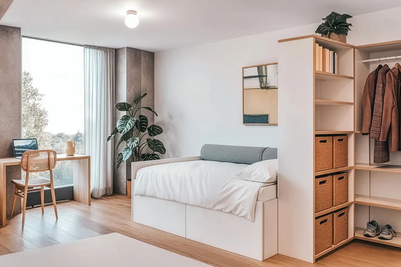 Wähle zwischen verschiedenen Suite-Typen, passend zu deinem Lebensstil und Budget. Von der Bloom Suite bis zur Zen Suite – jede ist mit durchdachter Einrichtung und einem eigenen Badezimmer ausgestattet, damit du dich vom ersten Tag an wie zu Hause fühlst.