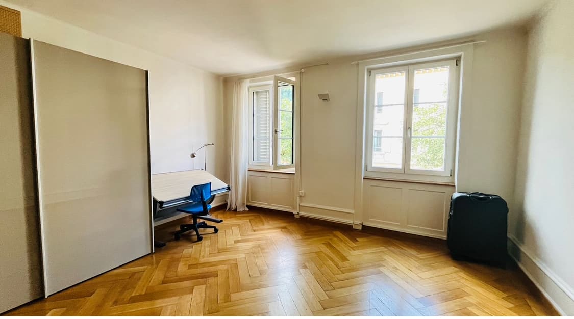 ,Einzelzimmer (23m2) in Baden: Kleiderschrank, Büro Tisch, Büro Stuhl, Regal, Spiegel, Wäschekorb, Auf Wünsch Tücher, 1 Bettwäsche, 1 Decke und Kissen.
