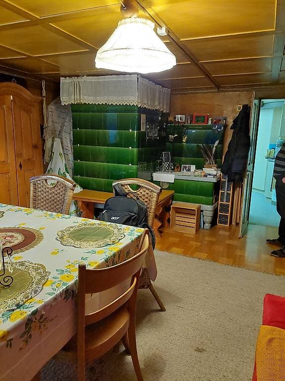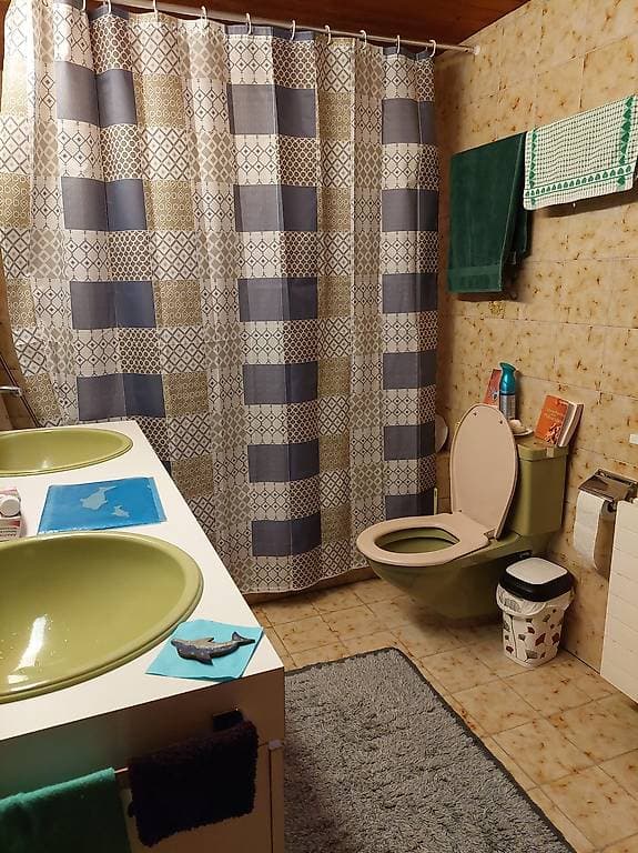 - Bad mit Waschmaschine und Sitzplätze werden gemeinsam genutzt.