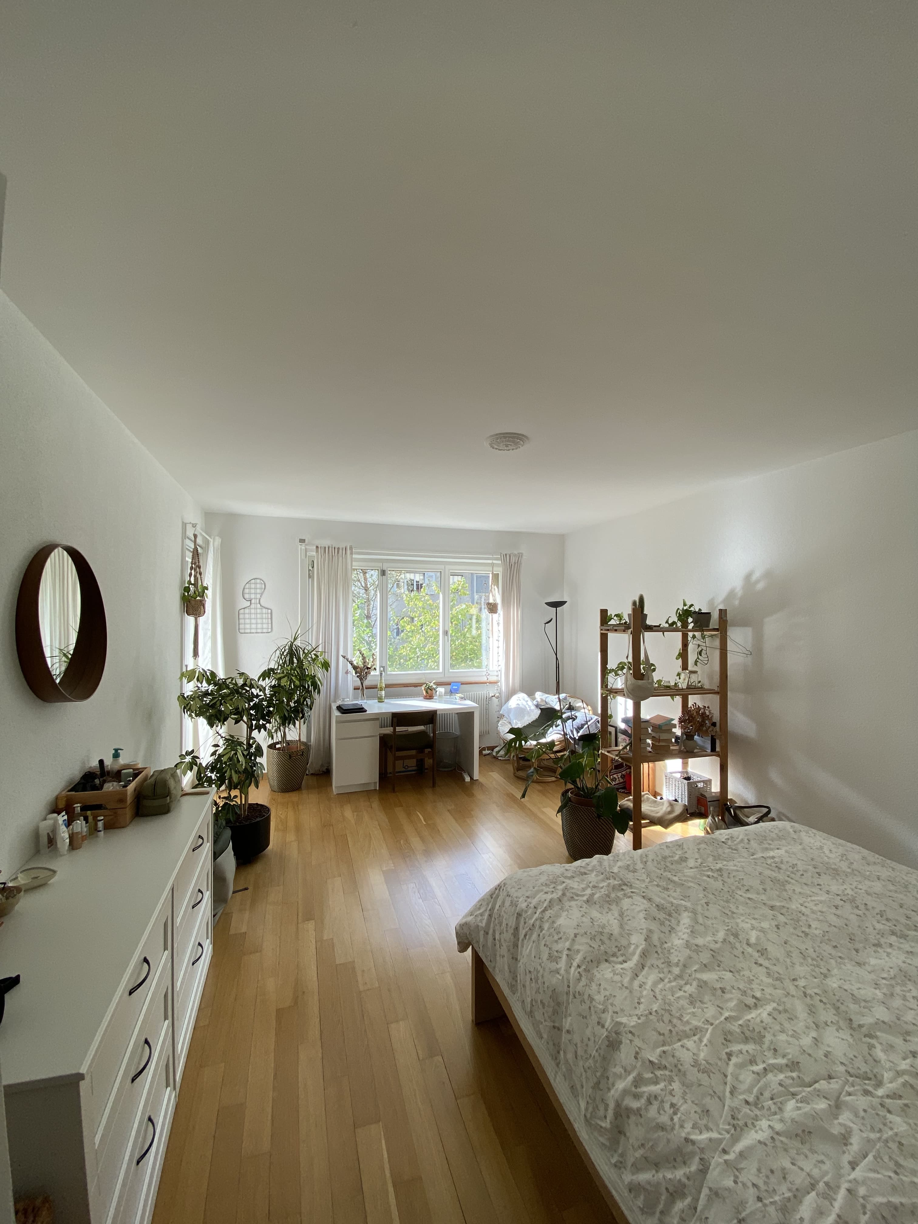 Wir suchen eine*n Nachmieter*in für mein Wg-Zimmer in einer gemütlichen 4.5-Zimmer Wohnung. Die Wohnung befindet sich im 2. Stock und ist nur über die Treppen erreichbar, der Wohnblock hat keinen Lift. Das Zimmer ist 21m2 gross und hat zwei Fenster, wovon eines direkt an den Balkon grenzt. Das Zimmer ist sehr hell und geräumig, was sich perfekt dazu eignet viele Pflanzenfreunde grosszuziehen und die Nachmittagssonne zu geniessen. :)