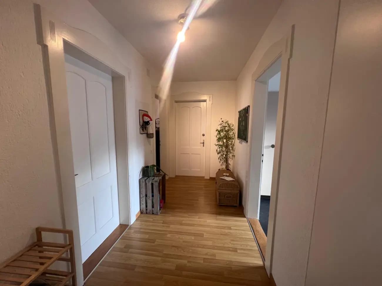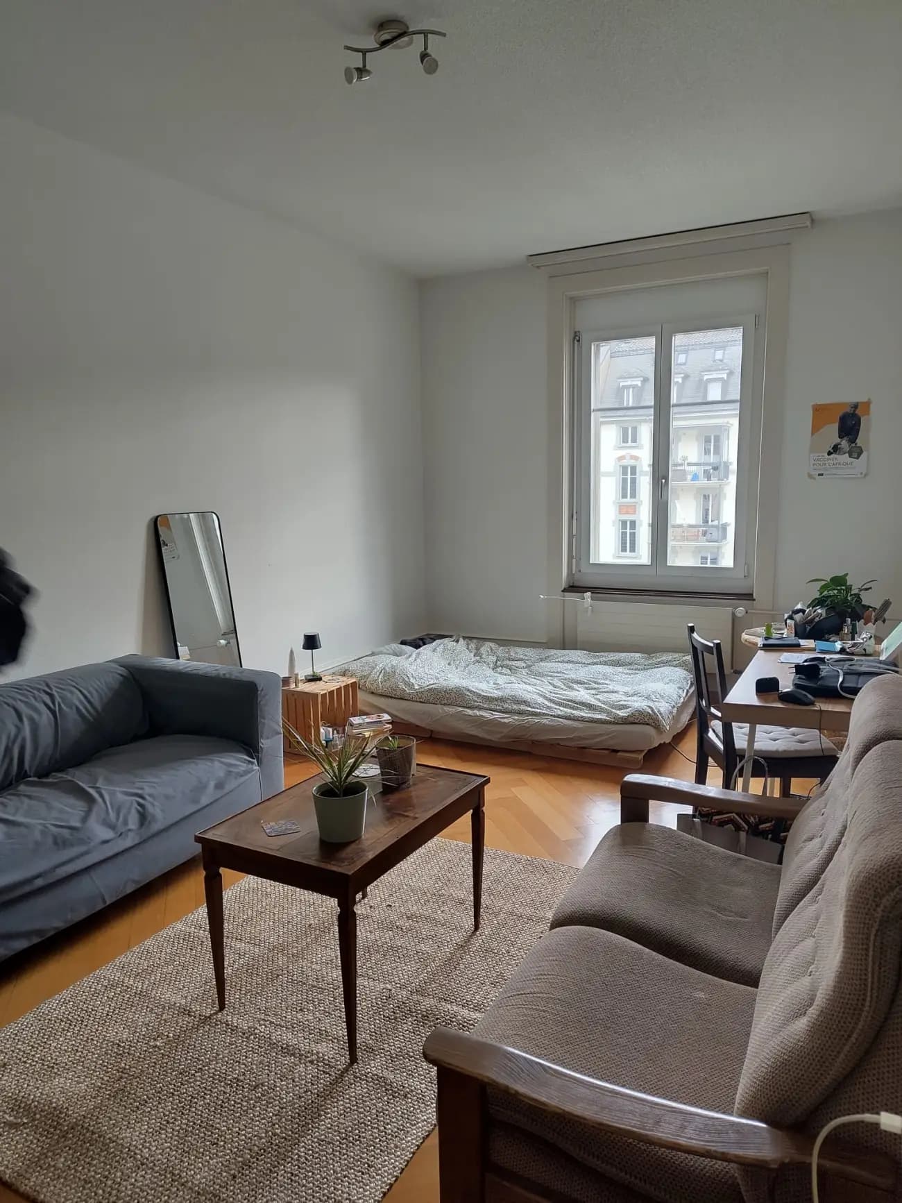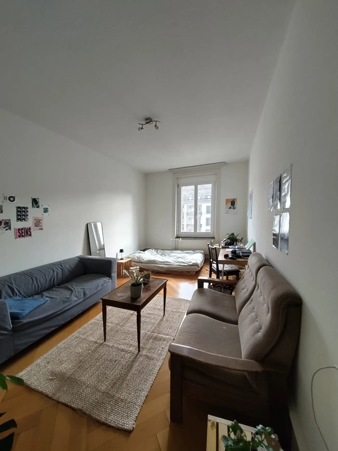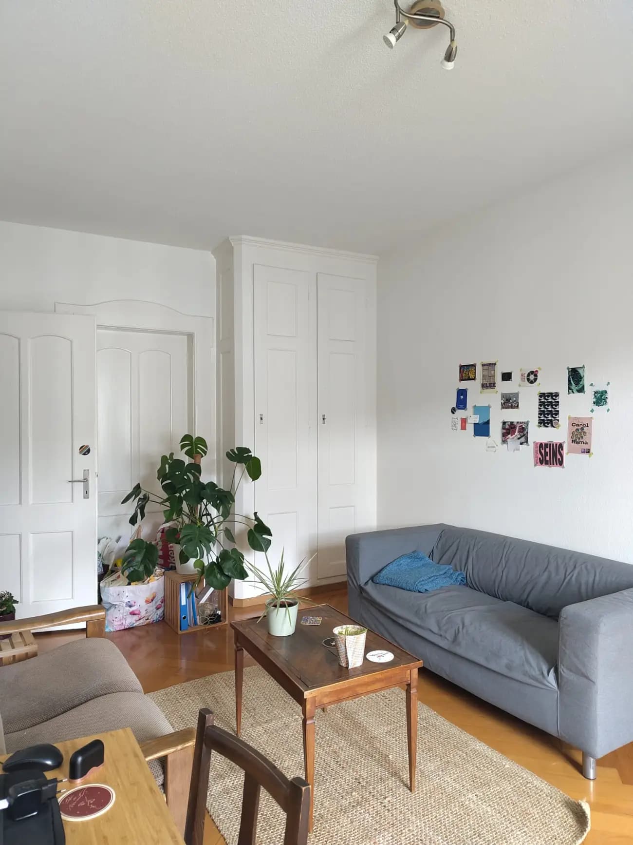 Das Zimmer in der charmanten Altbauwohnung verfügt über einen zweiteiligen Einbauschrank und hohe Decken. Im Eingangsbereich der WG befindet sich ebenfalls ein grosser Schrank, in der du mehrere Stauflächen zu deiner Verfügung hättest.
