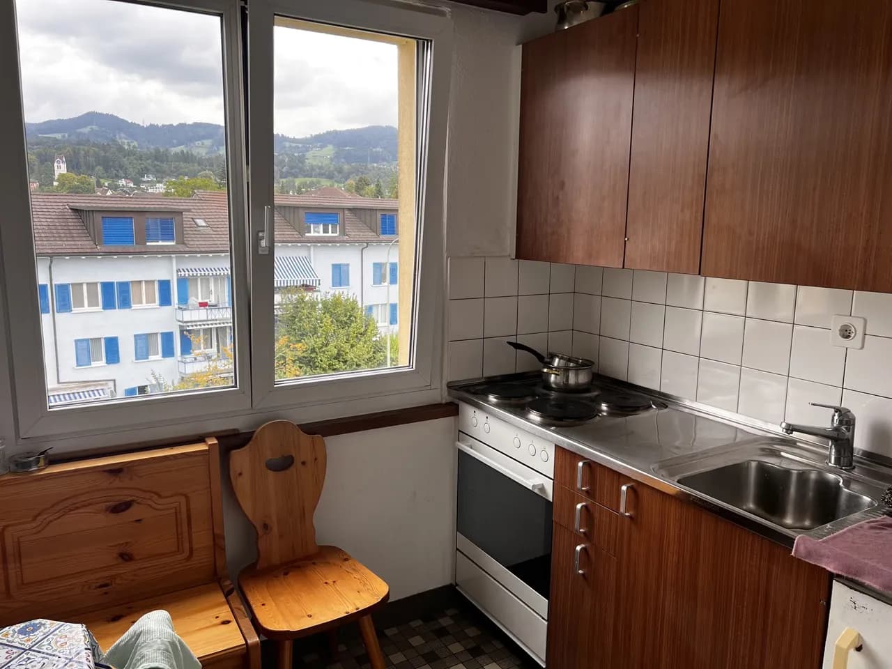 Zur Vermietung steht ein helles, möbliertes Zimmer (ca. 18 m²) in einer gepflegten 3-Zimmer-Wohnung in Hinwil. Das Zimmer ist mit Bett, Kleiderschrank, Kühlschrank und einem Ventilator ausgestattet. Ein grosses Fenster sorgt für viel Tageslicht und einen freundlichen Ausblick ins Grüne.