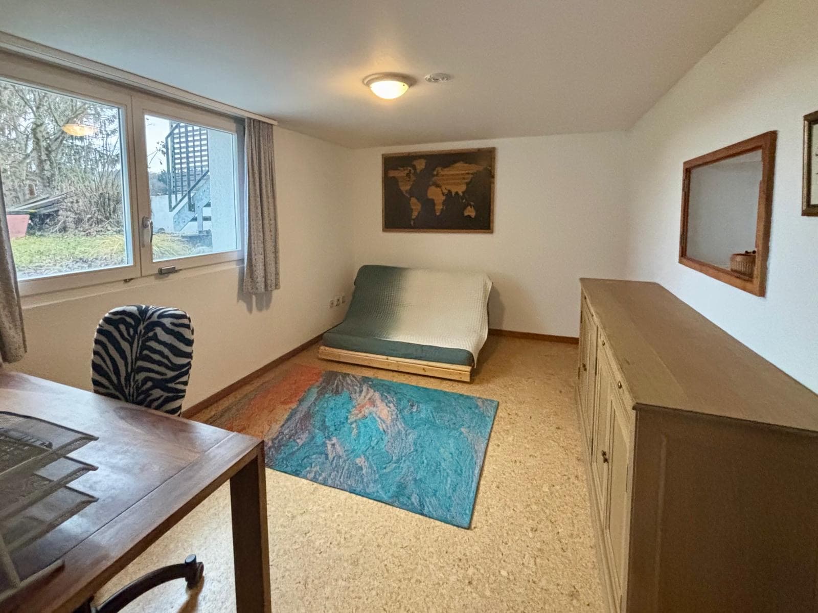 Das Zimmer ist ausgestattet mit Futonbett, Schreibtisch und Stauraum. Durch den separaten Eingang geniessen Sie maximale Unabhängigkeit.