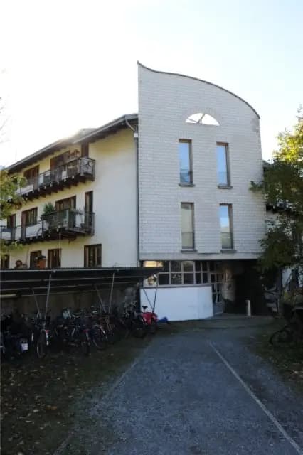 Unser zu Hause ist im obersten Stock des Gemeinschaftshauses Via 1 der Genossenschaft Via Felsenau. Insgesamt wohnen hier rund 40 Menschen, 3 Katzen und Hühner in einer vielfältigen, warmen Gemeinschaft direkt am Waldrand.