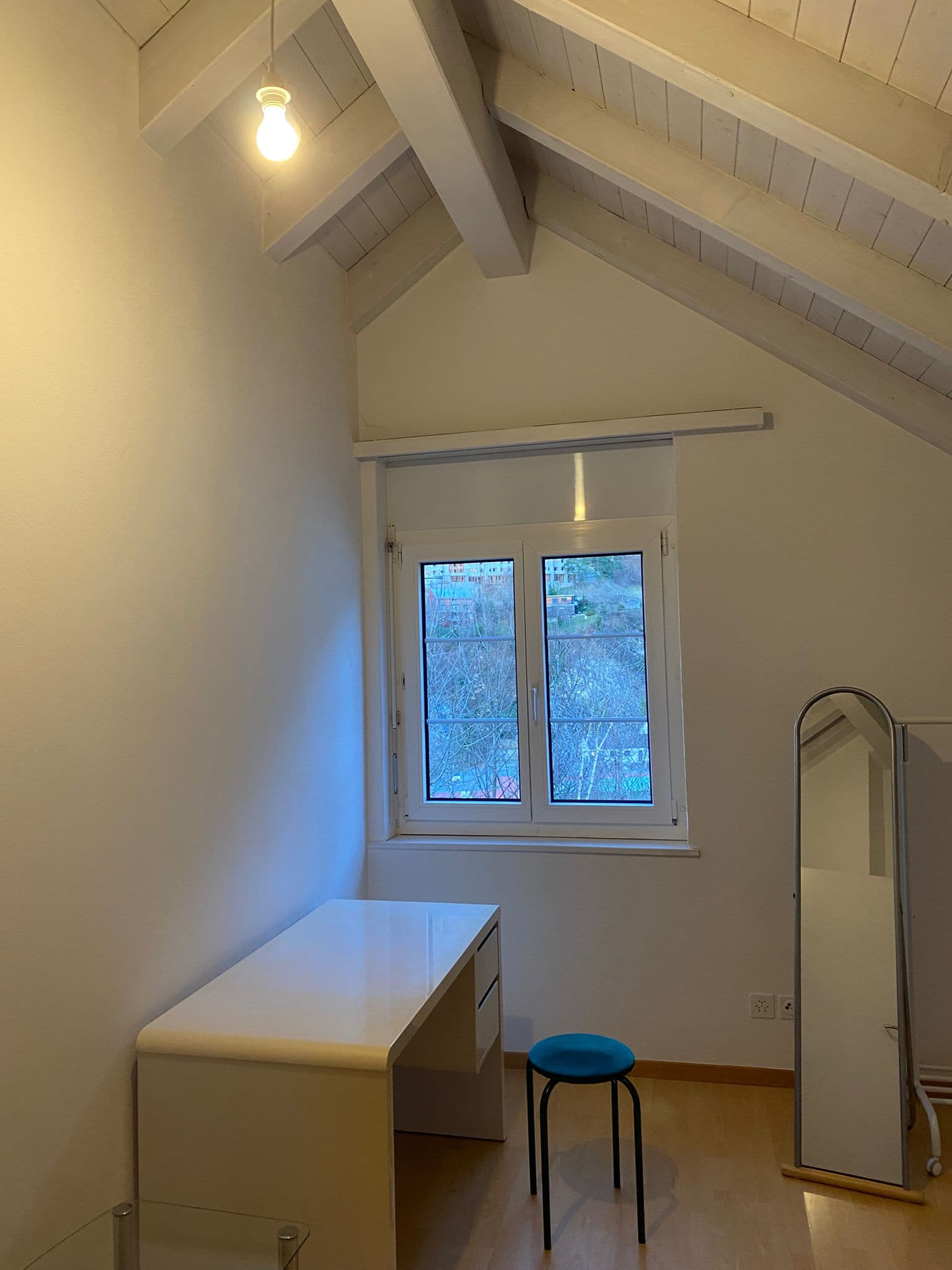 Die Fotos sind etwas älter. Auf den Bildern stehen noch Möbel im Zimmer – das Zimmer wird jedoch leer und unmöbliert übergeben.