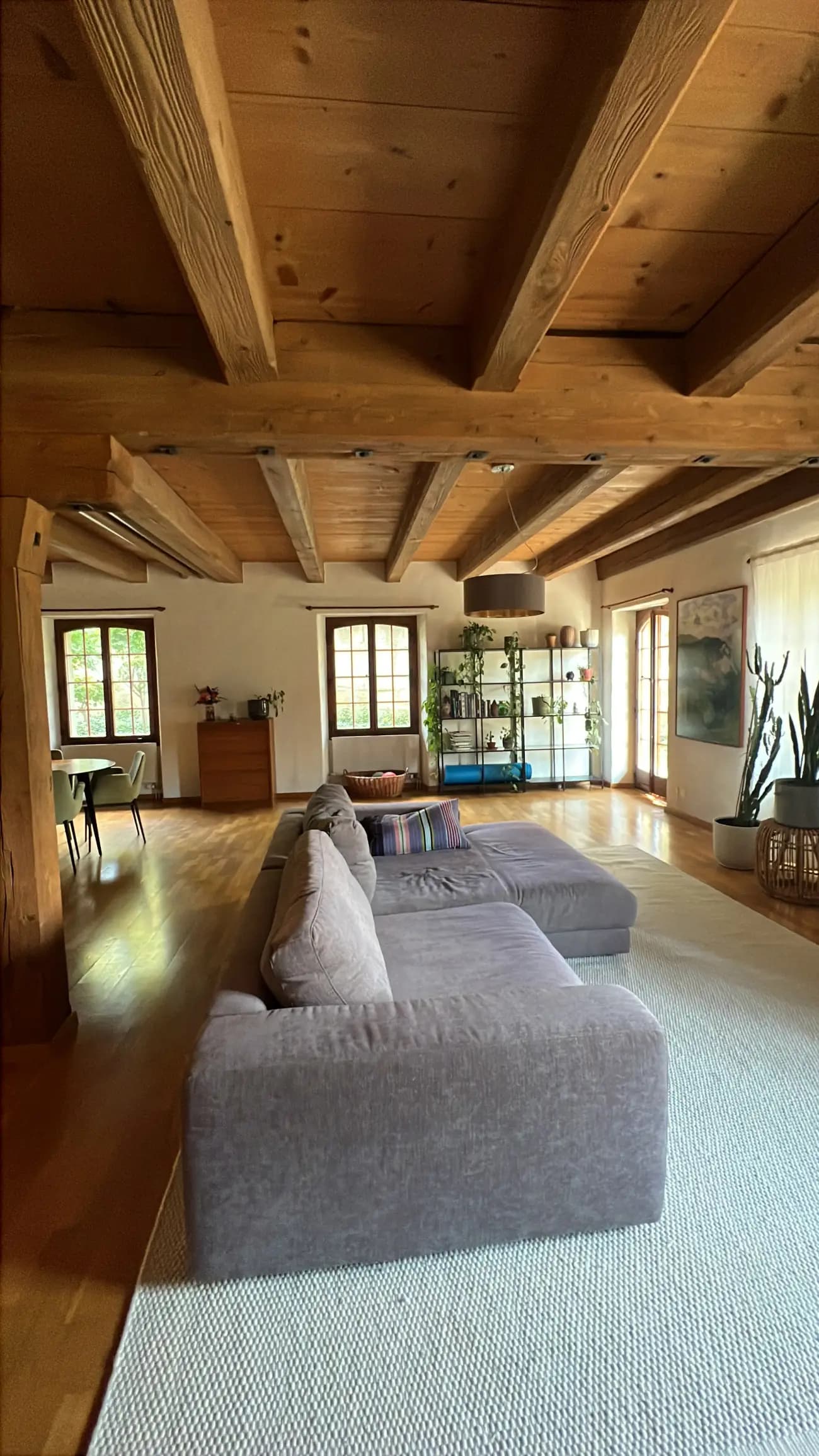 · Das riesige Ess- und Wohnzimmer ist für alle da und bietet genug Platz zum chillen, für deine Yoga-Einheit und gemütliche Abende