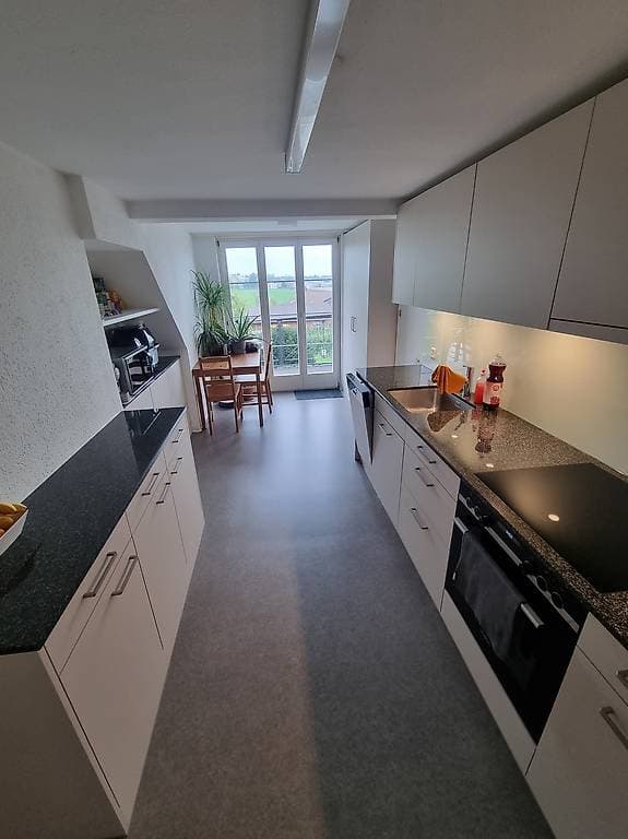 Ich wohne in einer grosszügigen 4½-Zimmer-Wohnung (ca. 94 m²) mit Balkon, Bad, moderner Küche, Waschmaschine & Trockner sowie einem praktischen Dachbodenabteil.