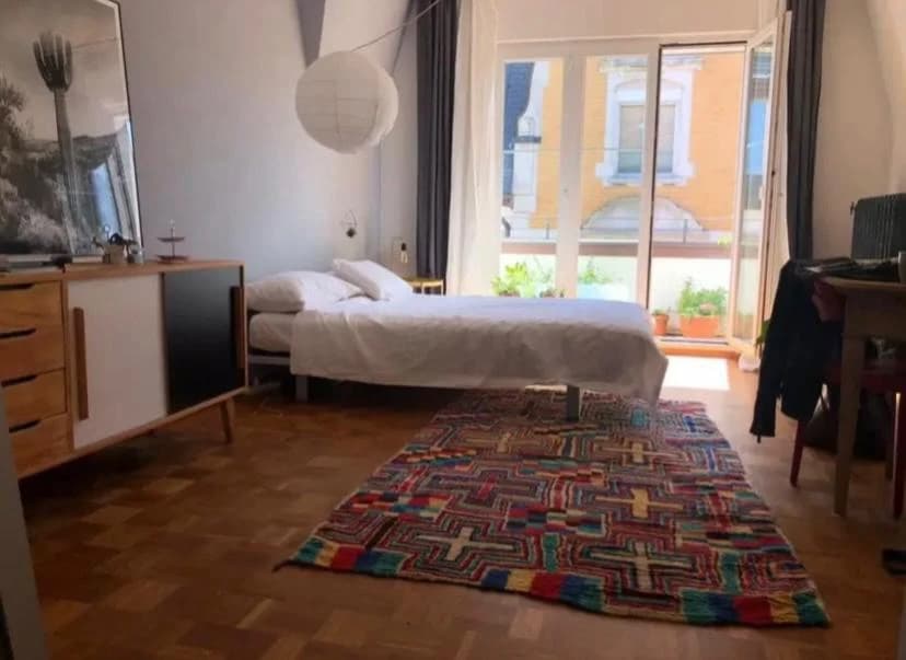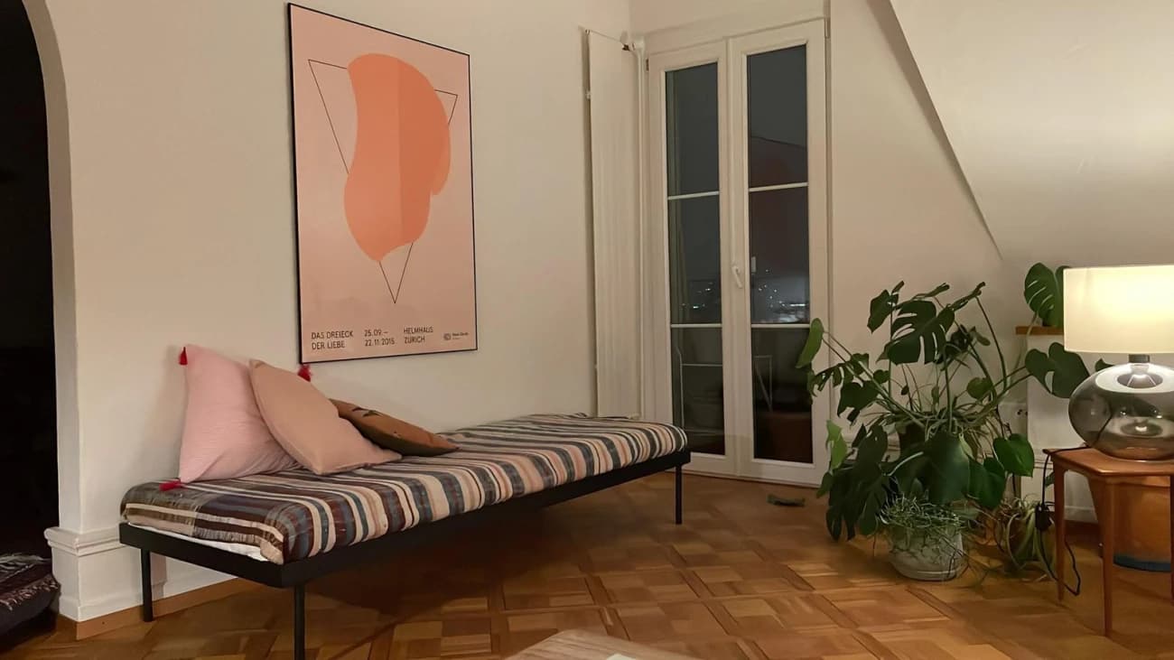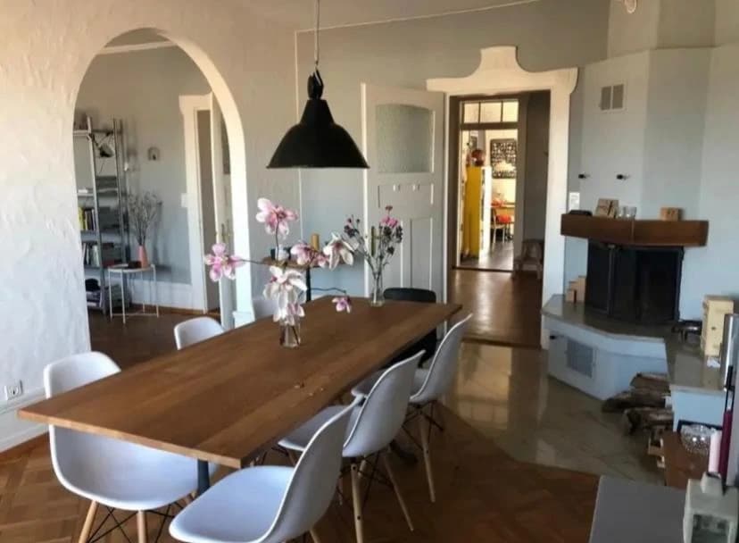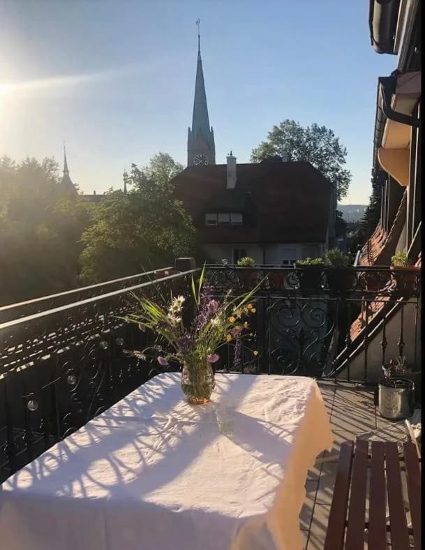 Dein Zimmer ist 18.4 m² groß, hell und verfügt über einen eigenen Balkon. Die Wohnung umfasst insgesamt 5.5 Zimmer im 3. Stock, mit einer wunderbaren Aussicht über die ganze Stadt. Dazu gehören ein großes Wohn- und Esszimmer mit Cheminée und Balkon, eine Küche mit Sitz- und Essgelegenheit sowie ein weiterer großer Balkon.