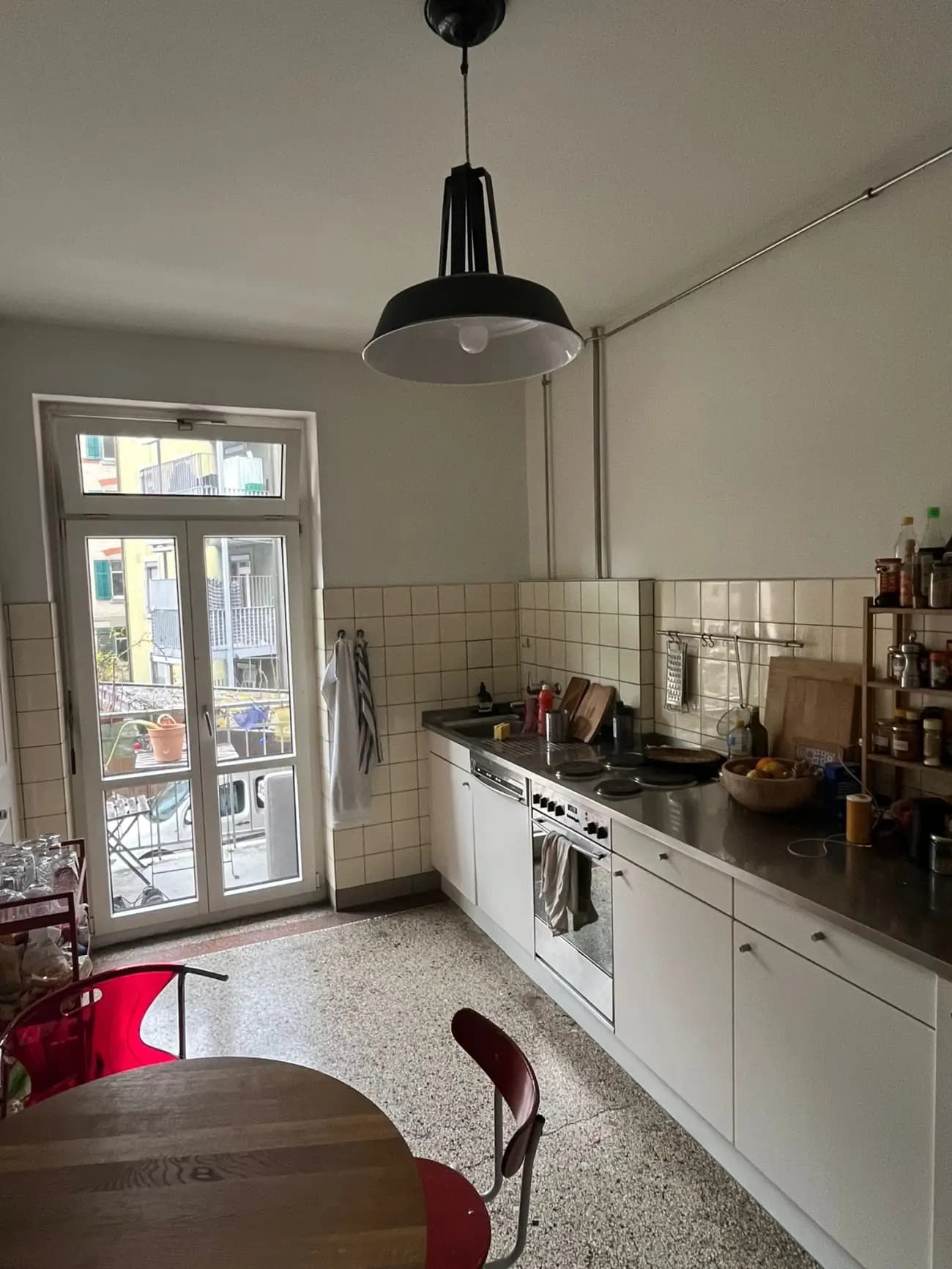 Die Wohnung ist in einem wunderschönen Altbau im ersten Stock und hat einen gemütlichen Balkon inkl. super gemütlichem Wohnzimmer und geräumiger Küche.