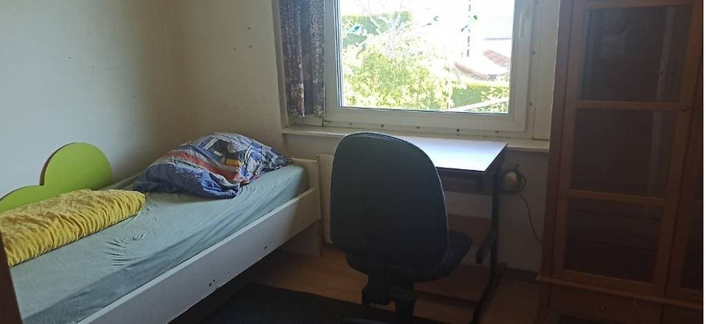Available April6 days onlineDas Zimmer ist: Es gibt 1 freies Zimmer im EG à 12m2. Das Haus hat 2 Küchen, ein grosses Wohnzimmer und 3 Badezimmer (4 WC's).