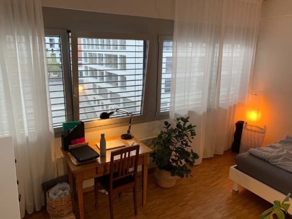Available May2 weeks onlineDas Zimmer befindet sich Parterre in unserem EFH, (gemeinsamer Eingang und gemeinsame Garderobe).
