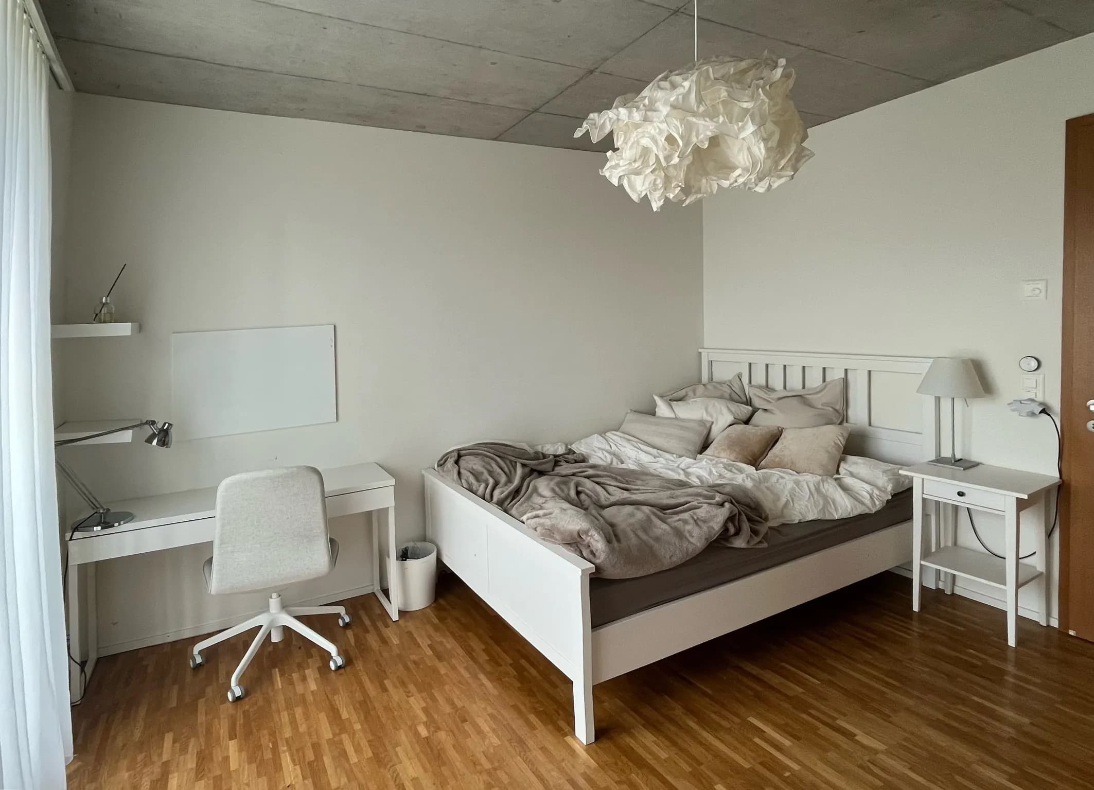 Available April2 days onlineDas Zimmer ist: Sehr gross und hell, mit hoher Decke. Du teilst einen ebenfalls grossen Balkon mit Fredy.