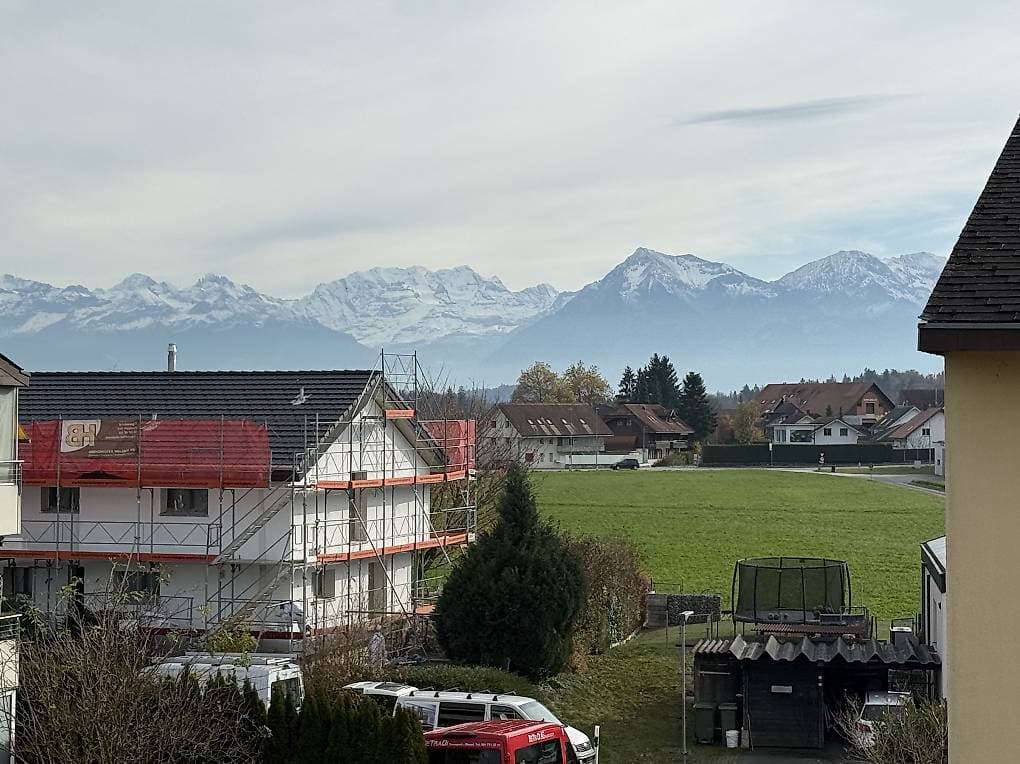 Bad mit Fenster, Badewanne und grossem Waschtisch ? Seperates WC mit Lavabo und Spiegelschrank.