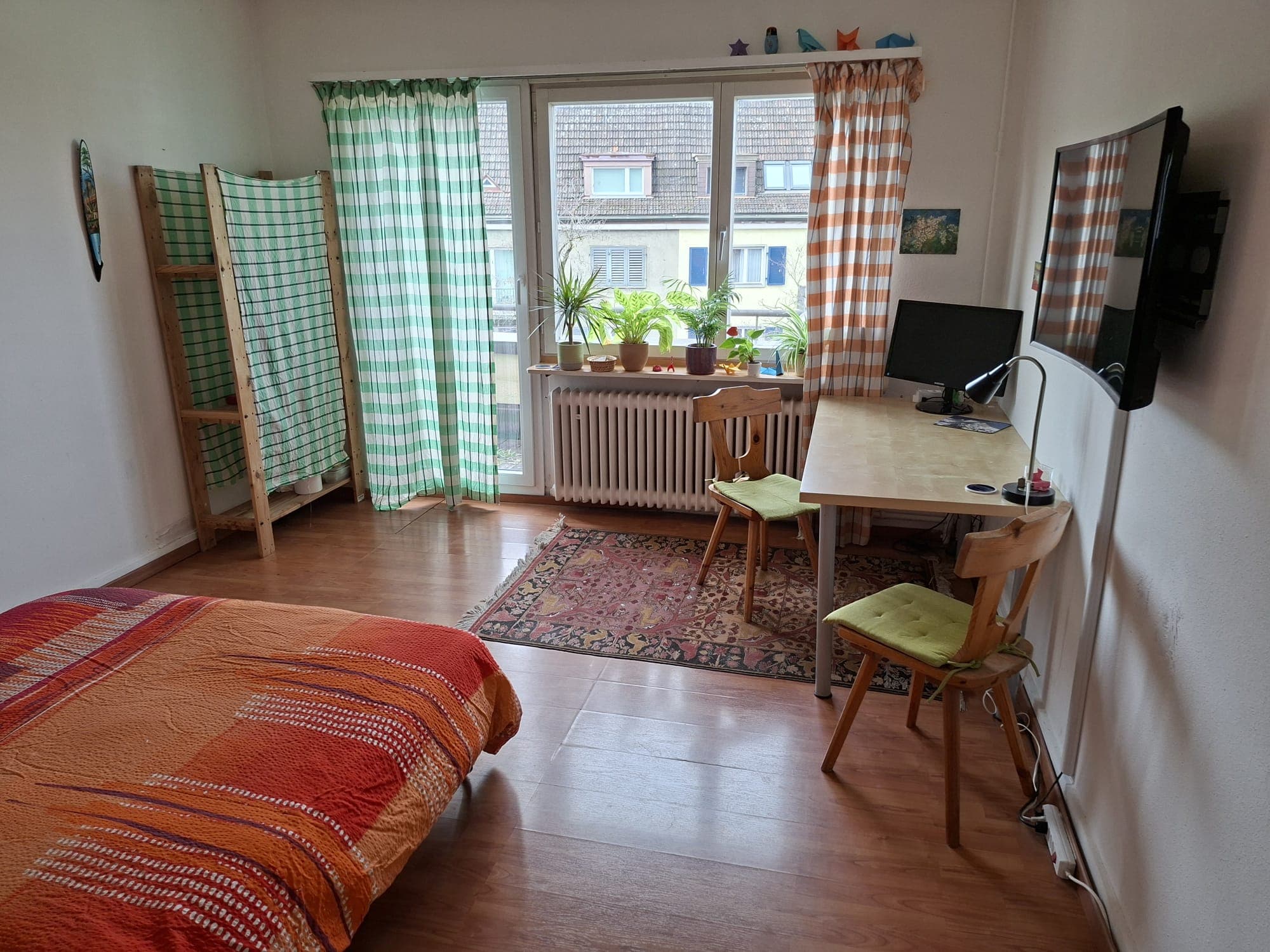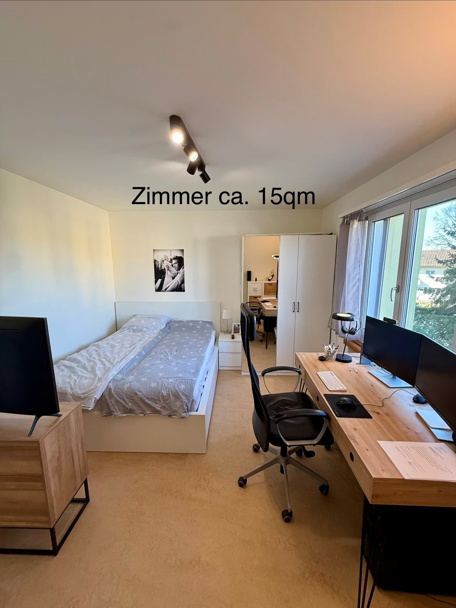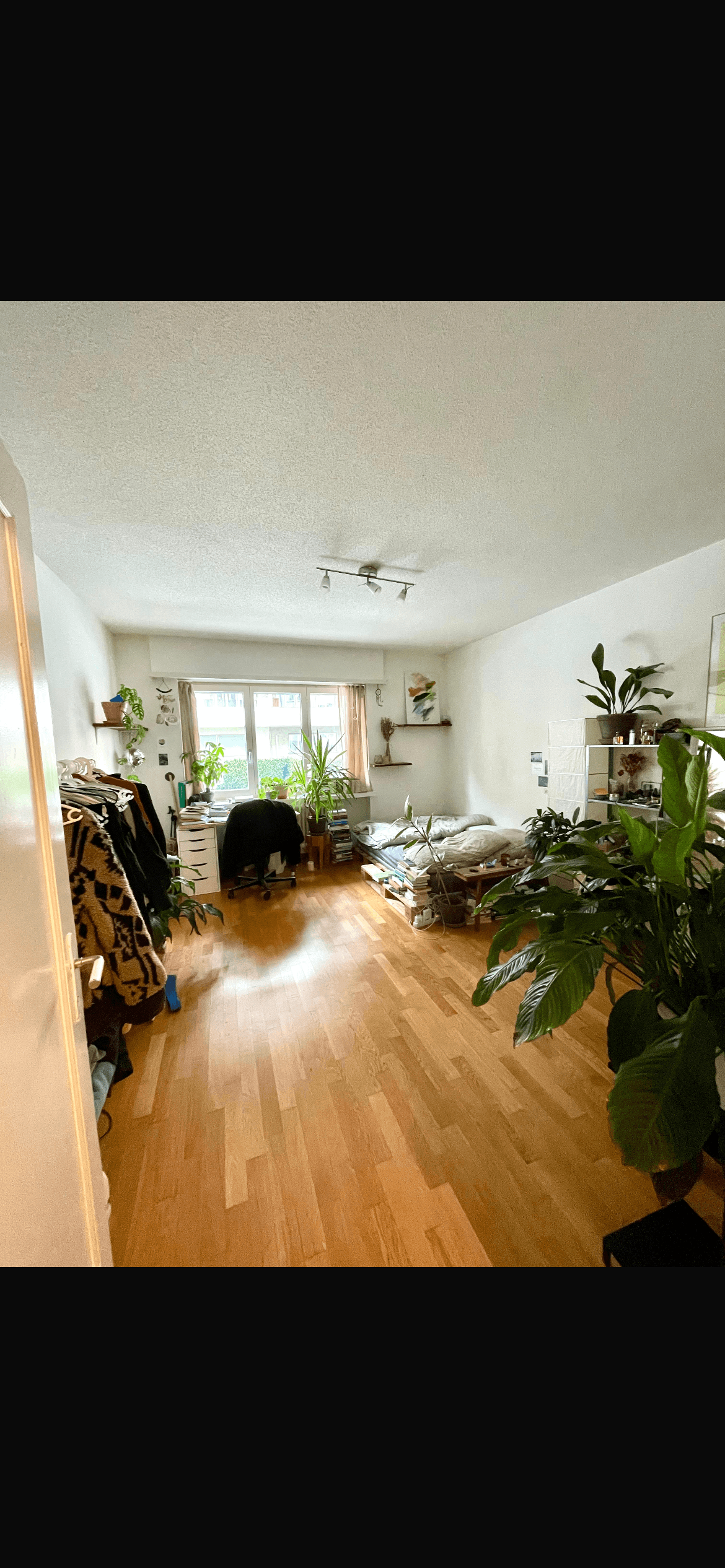 Available April9 days onlineDu beziehst ein lichtdurchflutetes, sehr großes Zimmer mit eigenem, geräumigem Kleiderschrank.
