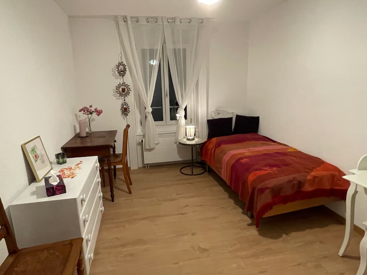 1 day onlineonline.since 1 dayNous louons une belle chambre dans un immeuble ancien rénové, à seulement 3 minutes de la gare de Bienne.is fully furnished, might still be possible to bring own furniturewashing machine in the apartmentthe room offers a separate bathroom which you don't need to share with anyoneshared wifionly women, or women preferred