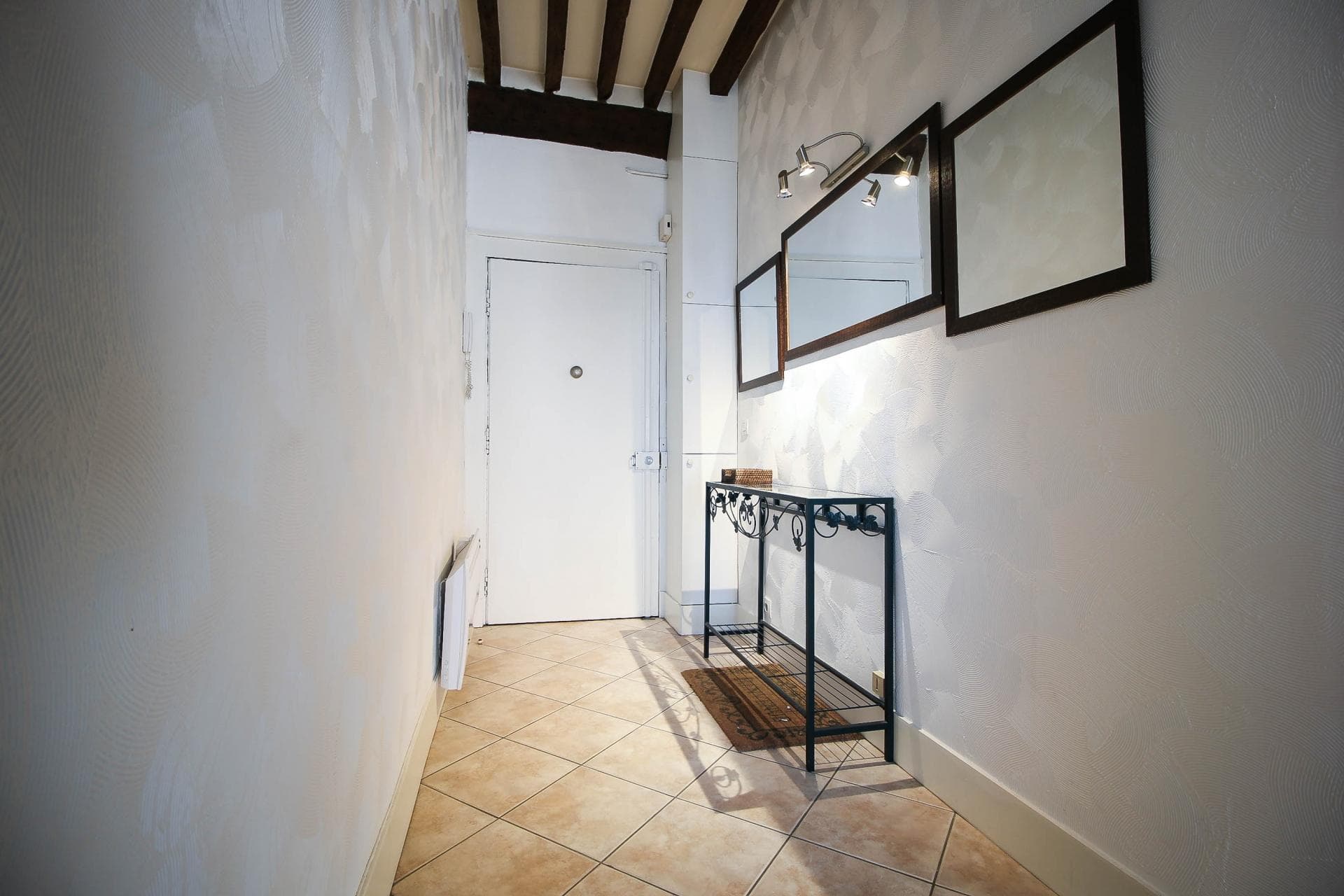 Möblierte, 38 m² große 1-Zimmer-Wohnung im Erdgeschoss, komplett renoviert. Sie verfügt über ein Wohnzimmer, eine voll ausgestattete Küche, ein Schlafzimmer, eine ebenerdige Dusche, ein separates WC und eine Terrasse mit Gartenzugang. Unabhängige Gaszentralheizung.