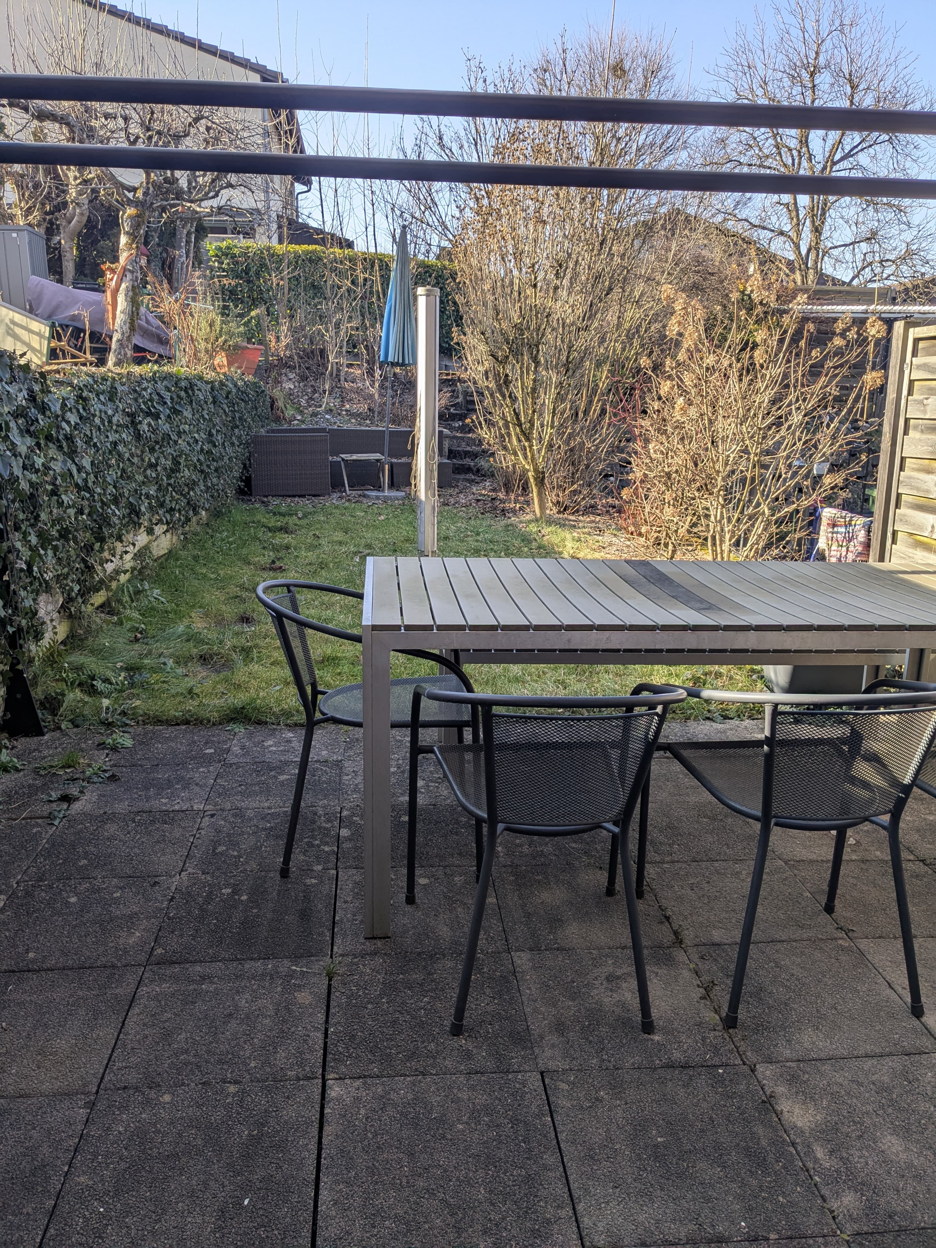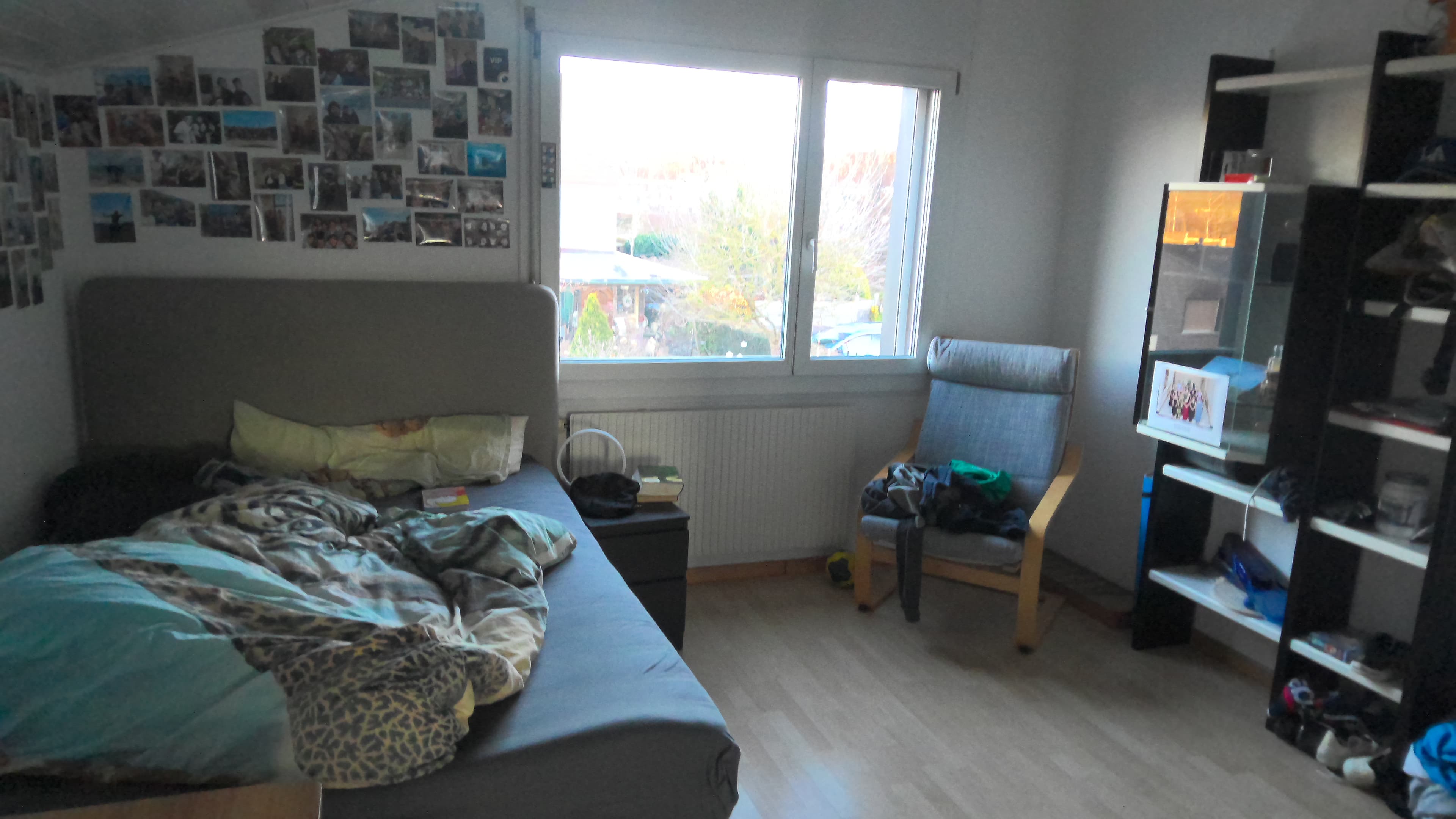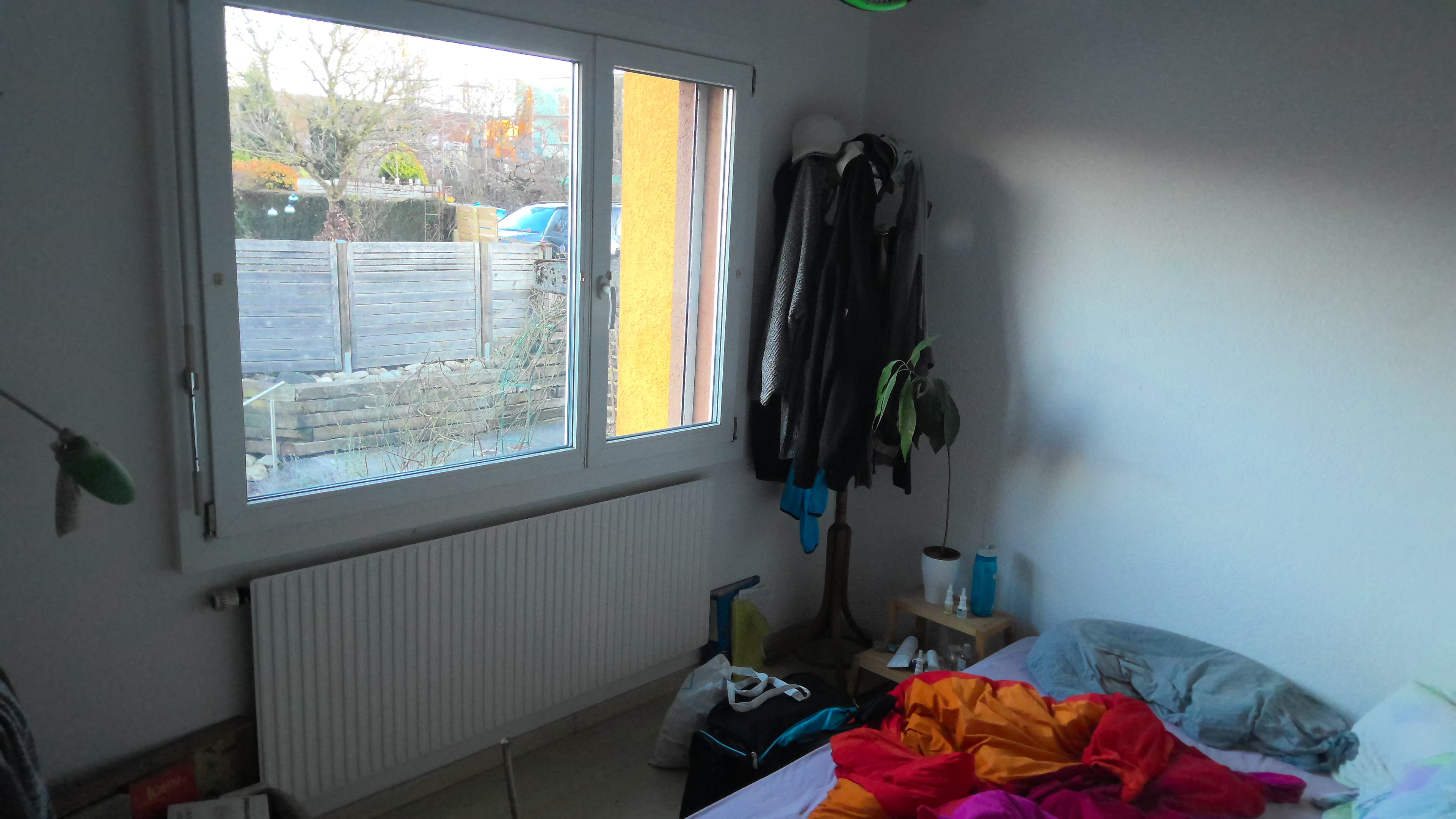 Reiheneinfamilienhaus in einem relativ ruhigen Quartier. Wir haben 5 Zimmer. Wer in welches Zimmer ziehen würde, ist relativ flexibel. Zudem haben wir eine Waschküche mit Waschmaschine, ein Bad mit WC und ein separates WC. Wir haben einen kleinen Garten.