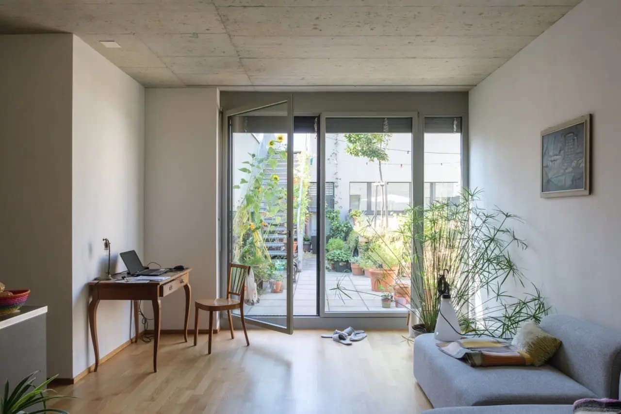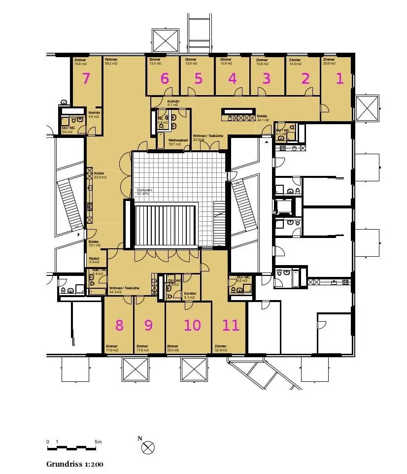 Ab Dezember wird ein Cluster (Nr. 7) frei. Das Cluster ist mit einem privaten Bad ausgestattet, 25m2 gross und kostet im Monat 950.-. Die Zimmer sind an grosszügige Gemeinschaftsflächen angebunden, zu denen auch unser Herzstück, der begrünte Patio, gehört.