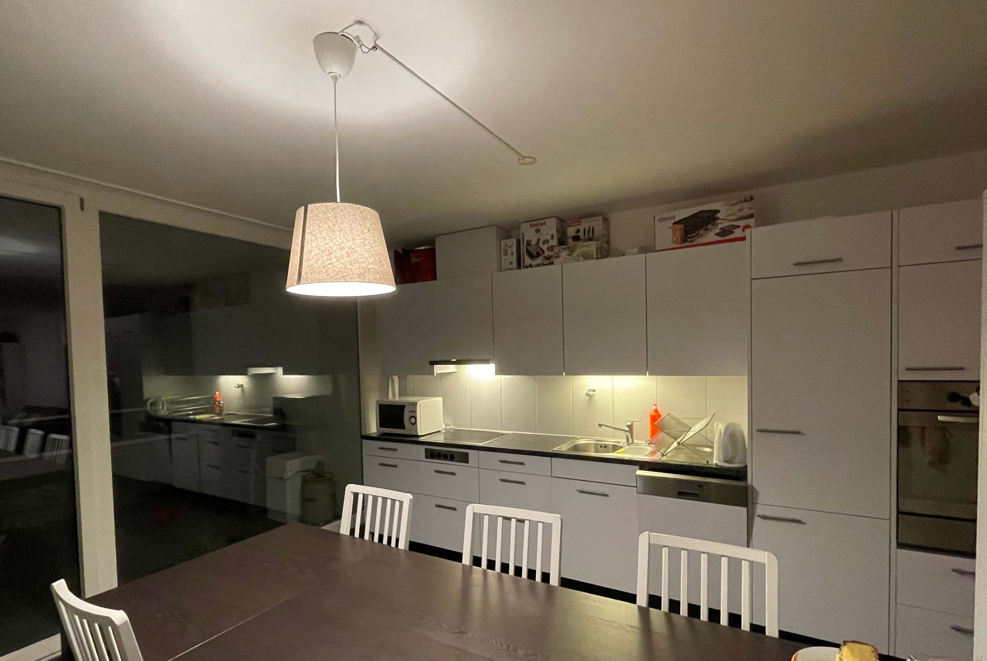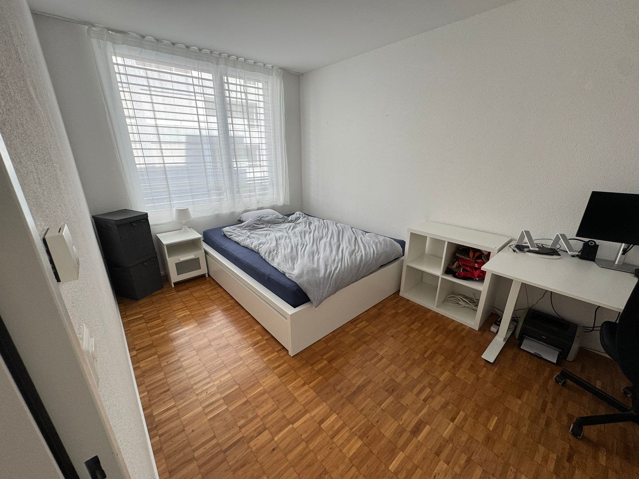 Zu der Wohnung, es handelt sich um eine 4,5-Zimmer Wohnung mit einem grossen Wohn- und Essbereich für gemeinsame Abende beim Kochen oder einfach gemütlich zusammensitzen. Dein zukünftiges Zimmer ist 12,5 qm gross und hat ein grosses Fenster. Das Zimmer ist unmöbliert. Die Wohnung hat zwei Bäder, eines mit Dusche und eines mit Badewanne und Waschmaschiene und Trockner sind direkt in der Wohnung vorhanden. Die Wohnung hat auch zwei Balkons. Die Warm-Miete beträgt 872 SFR plus Internet und Strom.