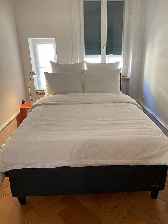 Möbliertes Zimmer in berufstätigen WG (30+) mit Wochenpendlerin; sehr ruhig und ordentlich, Einrichtung charmante renovierte Altbauwohnung in Design-Klassik, Zimmer zum ruhigen Innenhof mit Boxspringbett, insg. 60m2, Bad mit Dusche, voll ausgestattete Küche mit Glaskeramikherd, Internet (Glasfaseranschluss), Waschmaschine und Tumbler zur Mitbenützung. Wäsche- und Reinigungsservice auf Anfrage.