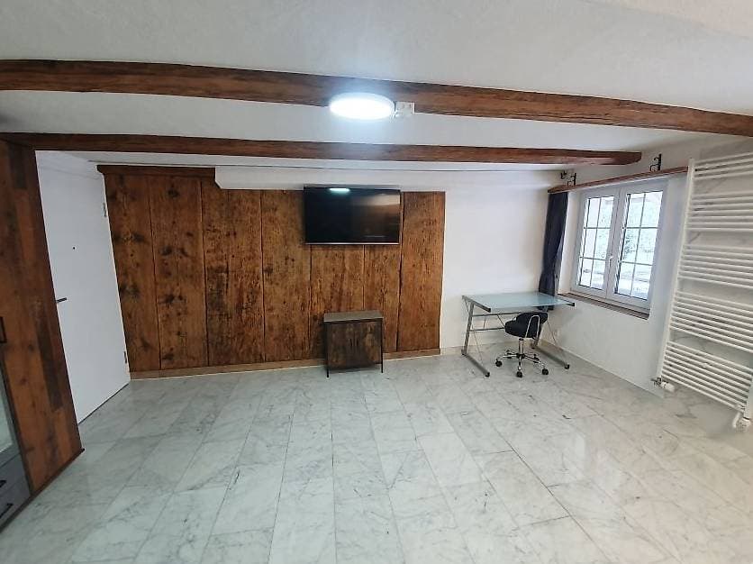 Sämtliche Böden sind gefliest, Wände z.T. Mit Naturstein, Klosterputz oder Baumwollputz mit Glitzer, Bodenheizung, Recooling, Klimaanlage im Dachgeschoss, elektrische Dachfenster mit Sonnenlammellenstoren, Verdunklungsvorhänge