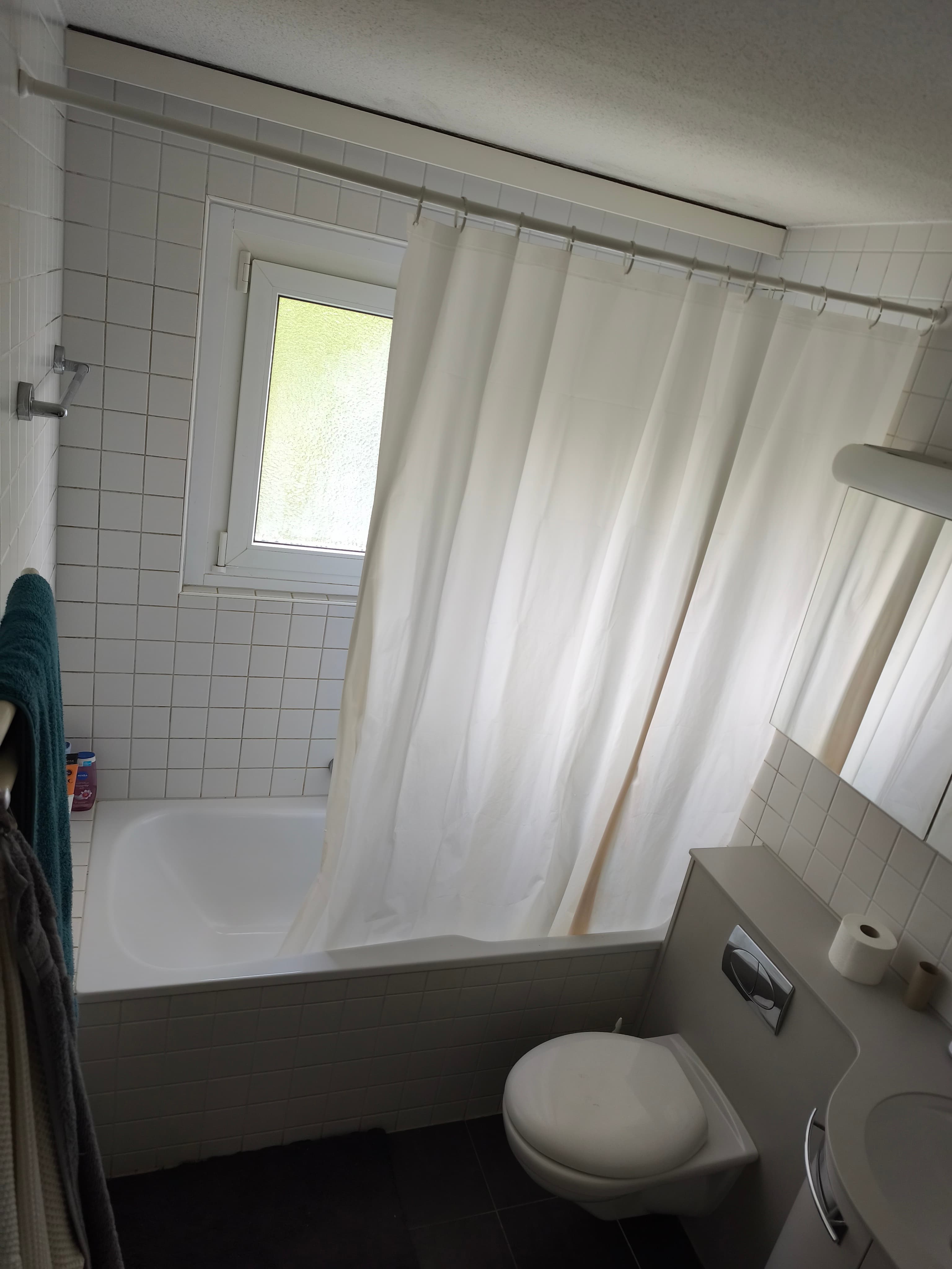 Die Wohnung ist ungefähr 110m² gross, hat grosse Räumlichkeiten, drei Schlafzimmer, ein Badezimmer, ein separates WC und einen schönen Ausblick auf den Wald. Mehrere Räume können gerne zusammen neu möbeliert werden.