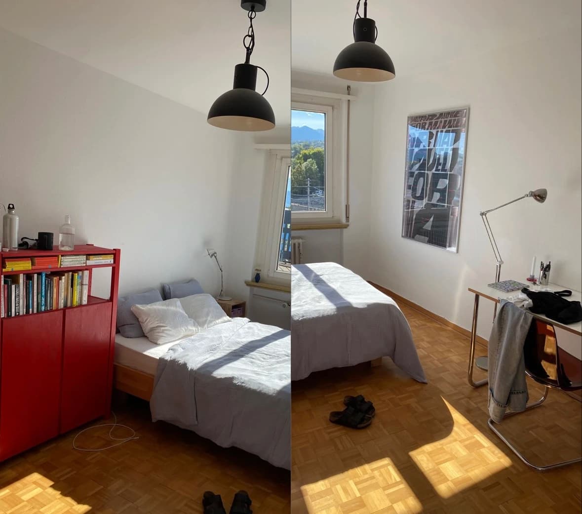 Bei uns wird auf Ende Mai oder Anfang Juni ein Zimmer frei. Es ist ungefähr 16 m2 gross und hat Morgensonne mit Sicht auf Gleis und Berge.