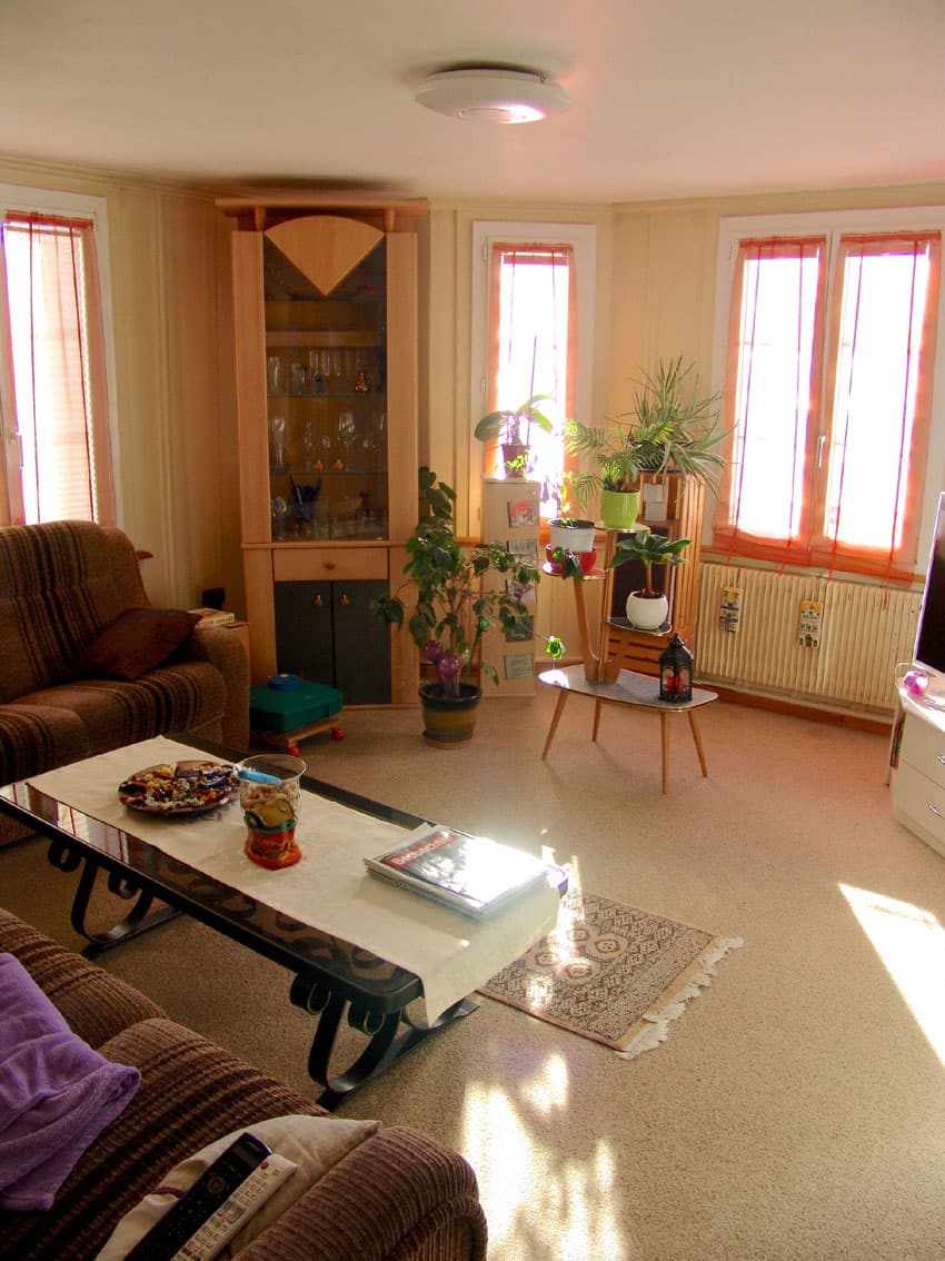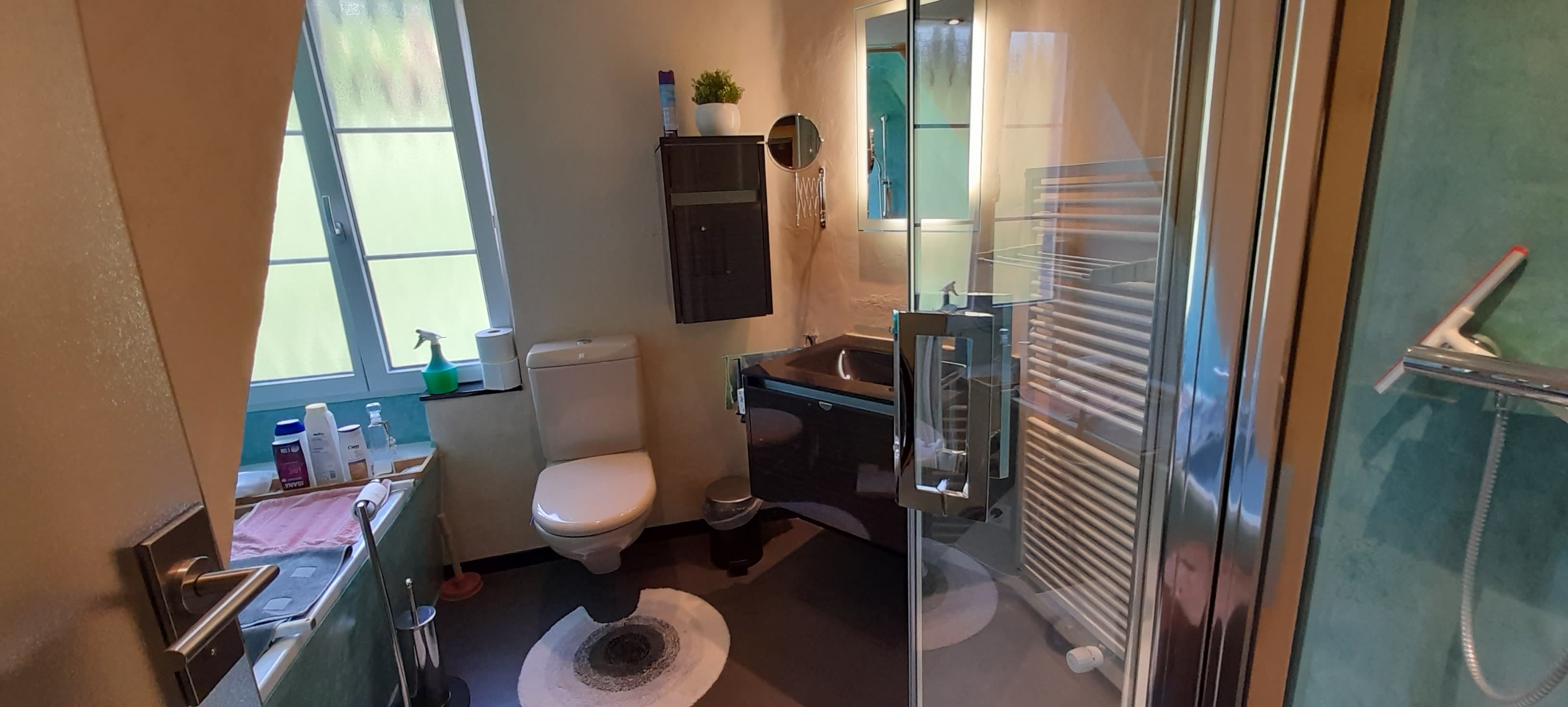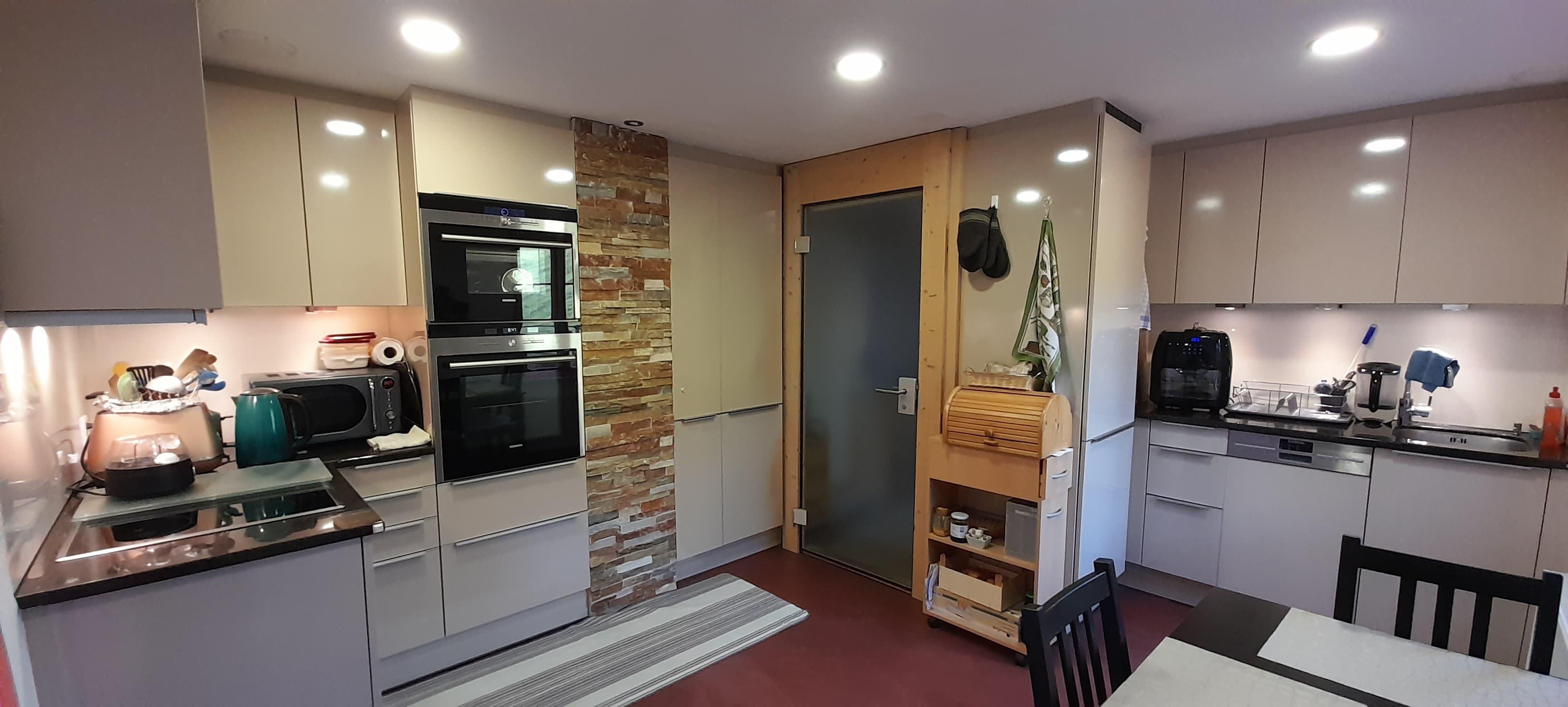 Haus hat 4 Stockwerke. Gemeinsame Benützung von Wohnzimmer (TV Joyn, Blu-Ray, Internetradio, Spotify), Esszimmer, Essküche (Geschirrspüler, Induktion, Steamer, Backofen, Mikrowelle, Eierkocher, Toaster, Wasserkocher, Heissluftfritteuse, Oskar-Küchenmaschine), Dusche, WC, Waschküche (Waschmaschine, Trockner, Trocknungsraum, Stewi vor dem Haus), Gartenterrasse, WLAN, 3 Parkplätzen, 1 Mountainbike.