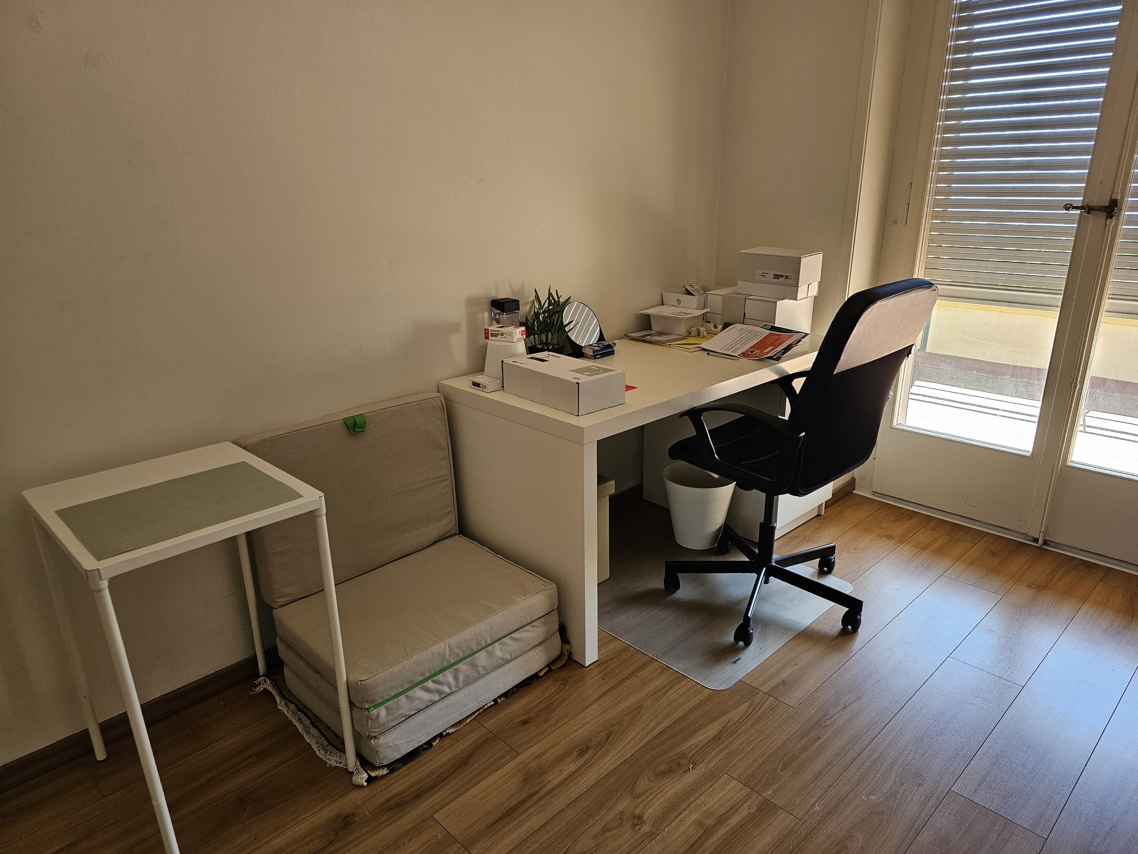 Lit et matelas (quasiment neufs), bureau, chaise de bureau, commode, table de chevet.