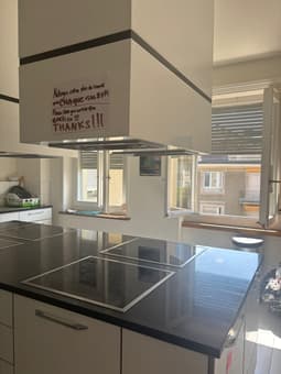 Grande cuisine et séjour à l'étage, en commun. Avec rangements pour chacun.