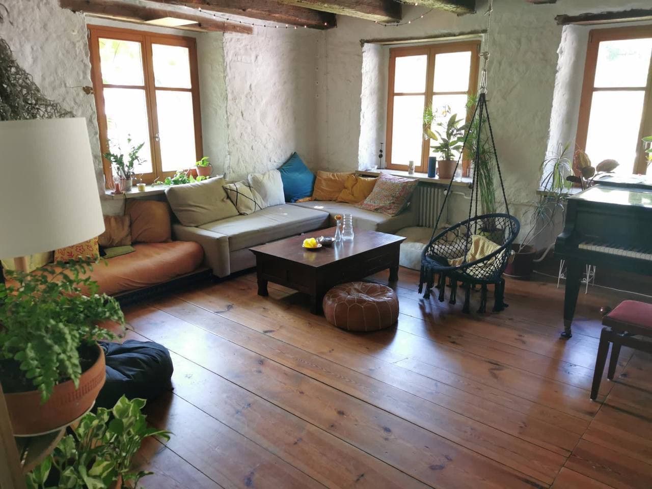 Unsere Haus-Wg befindet sich in einem großen, charmanten Haus in Dittingen (BL), aufgeteilt in zwei Wohnungen, mit einem großen Garten und Tieren. Unter uns in der Wohnung lebt noch ein Pärchen, mit denen wir den Garten teilen. Ebenso gibt es noch eine Einliegerwohnung im Haus, in der Dominique wohnt.