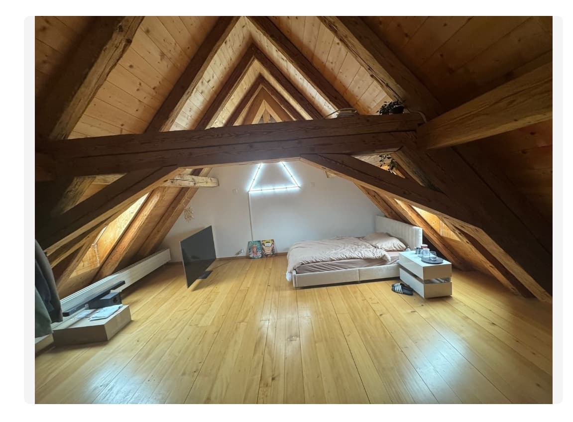 Zimmer, eigene Etage, 20 Quadratmeter, 2 Kippfenster) sowie ein praktischer Estrich zur mitbenutzung.