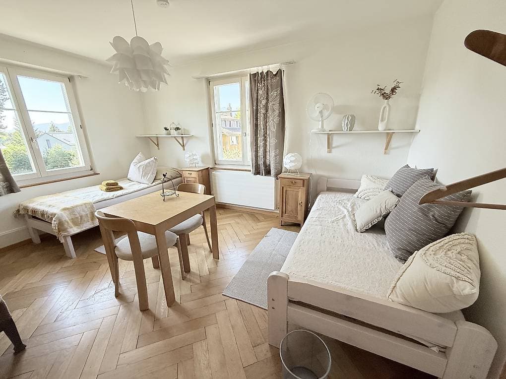 Ab 980 mind 3 Monate, je nach Zimmer. 3 grosse Einzelzimmer z.T mit TV in B&B für längeren Zeitraum. Zwei andere Zimmer auf dem selben Stock. Gemeinsame Küche und Bad. Regelmässige Reinigung. Kostenpflichtige Waschmöglichkeit. Parkplatz wenn verfügbar, sonst blaue Zone im Quartier (Parkkarte)