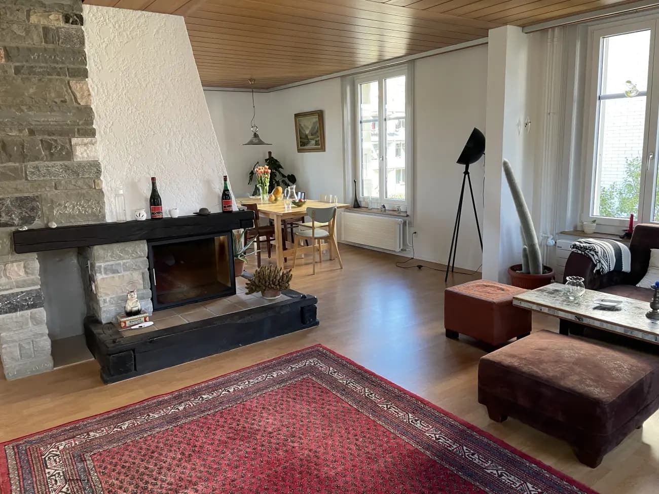 - Grosszügiges Wohnen: Großes Wohnzimmer mit gemütlichem Cheminée.